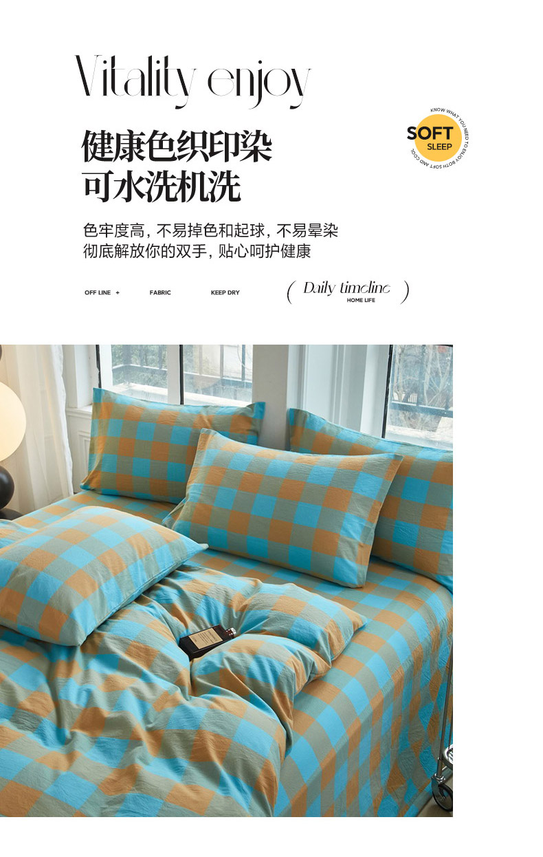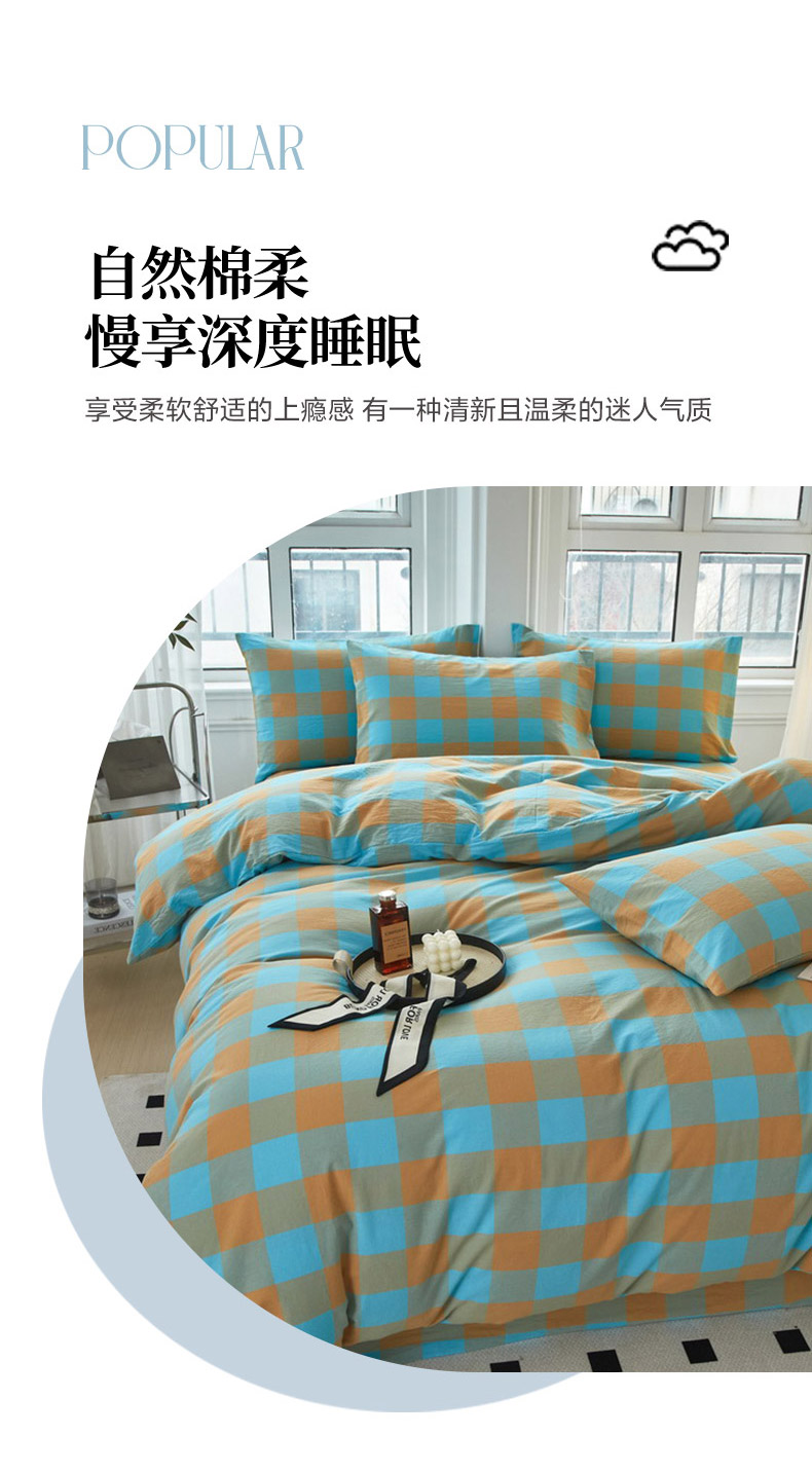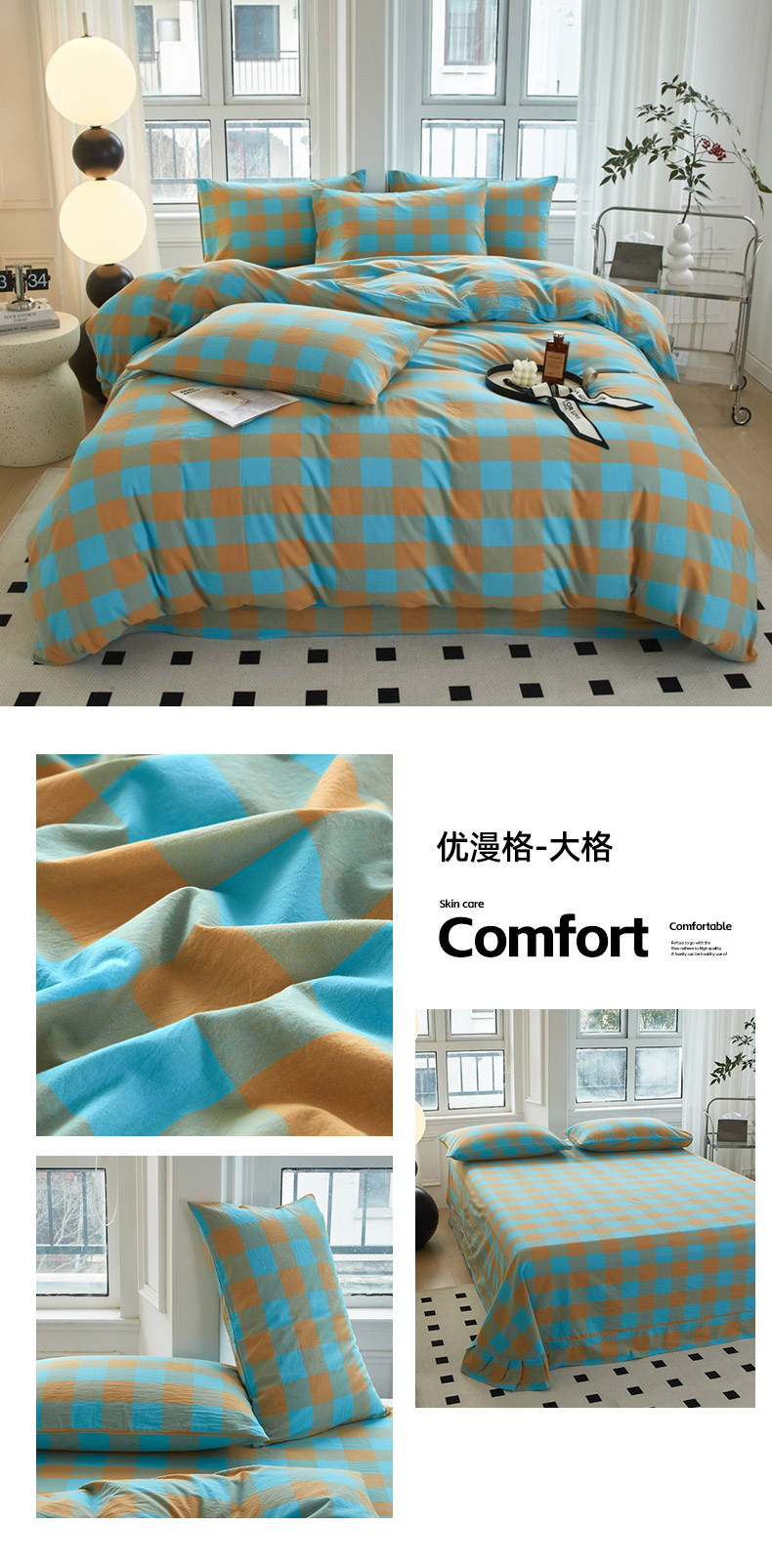商品名称:金纱玉纺家纺 2024新款全棉水洗棉四件套 优漫格-大格