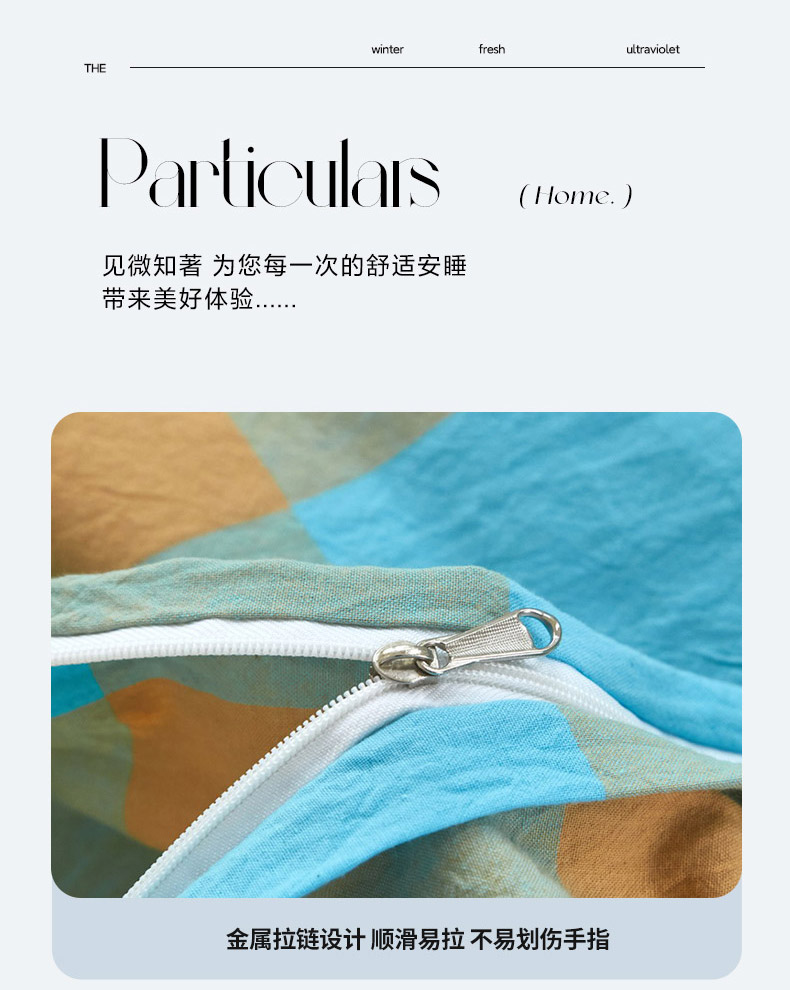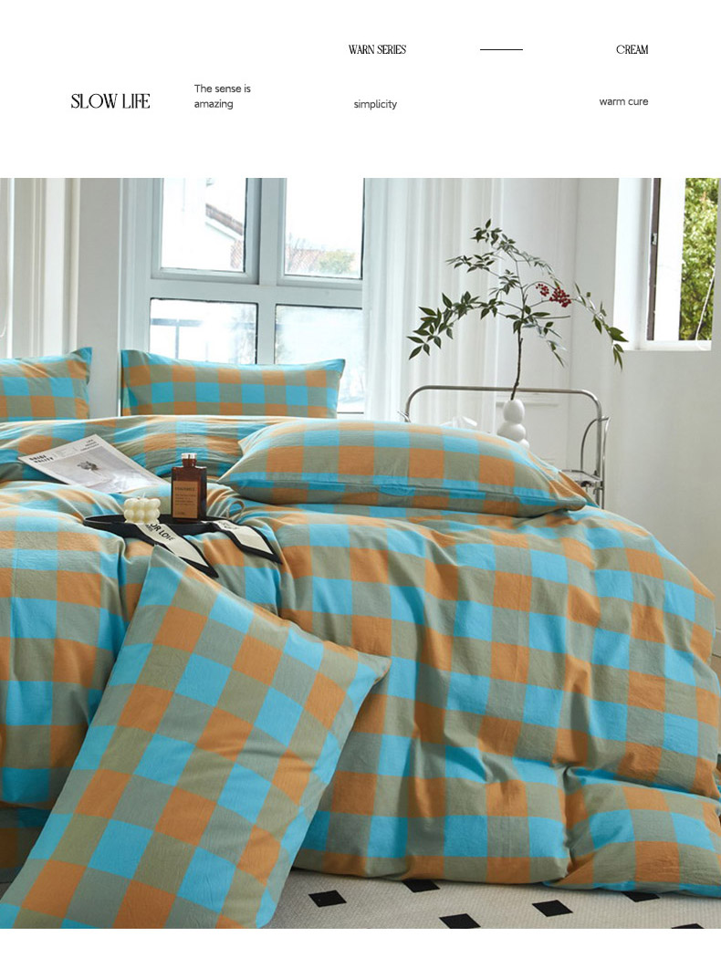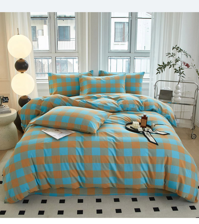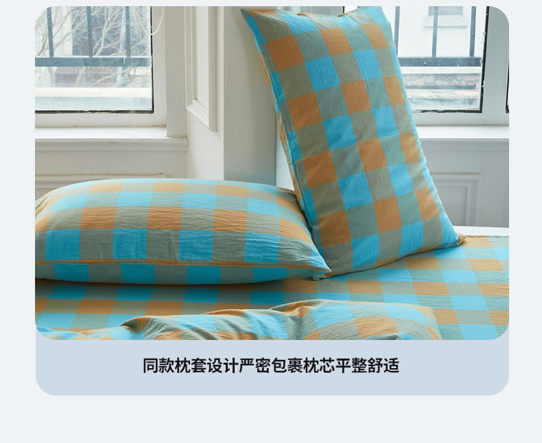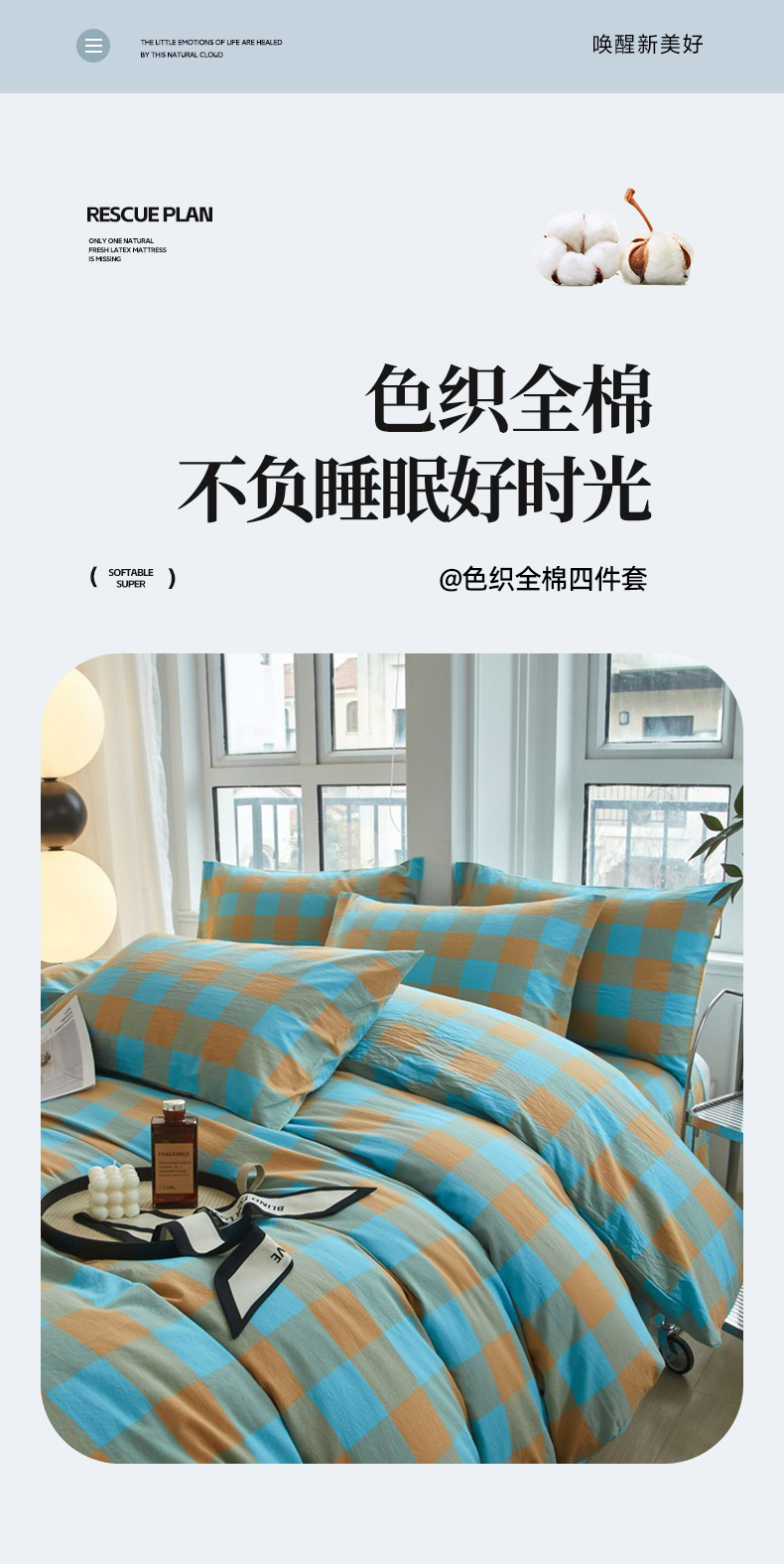 商品名称:金纱玉纺家纺 2024新款全棉水洗棉四件套 优漫格-大格