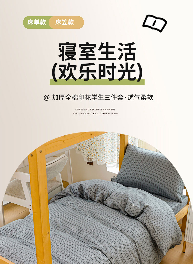 当前位置: 91家纺网 > 商品网购 > 床品套件 > 三件套 > 宅部落 2024新款全棉三件套纯棉学生宿舍上下铺六件套(第二批) 蓝小格