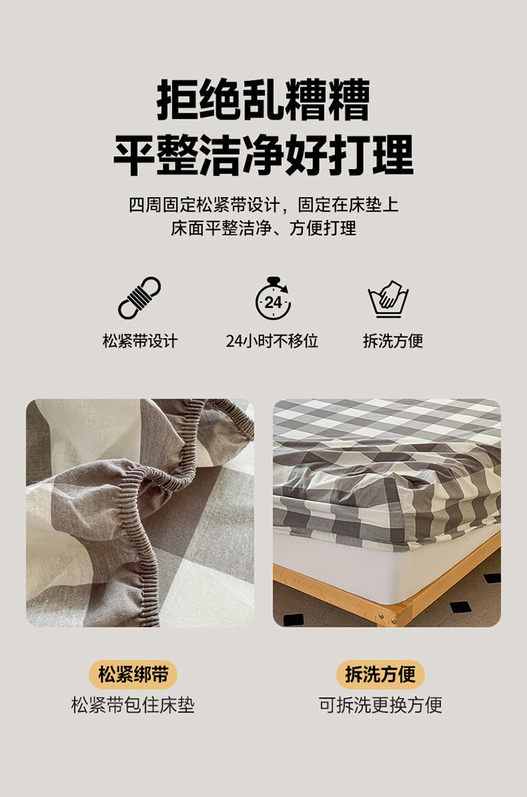 商品名称:寐眠 2024新款全棉水洗棉床单床笠单品-单床笠 灰中格