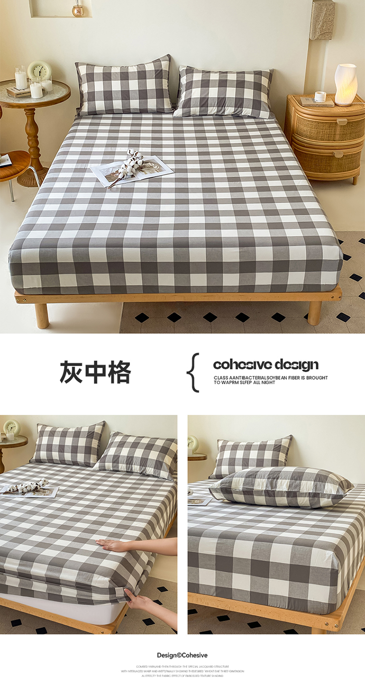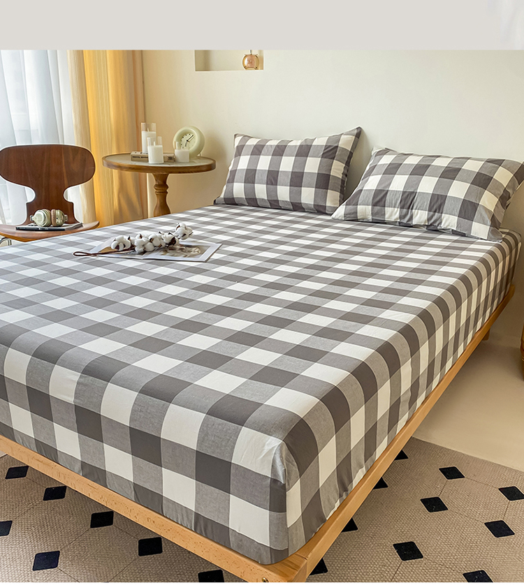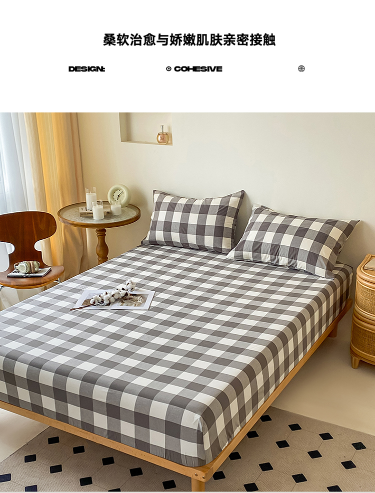 寐眠 2024新款全棉水洗棉床单床笠单品-单床笠 灰中格