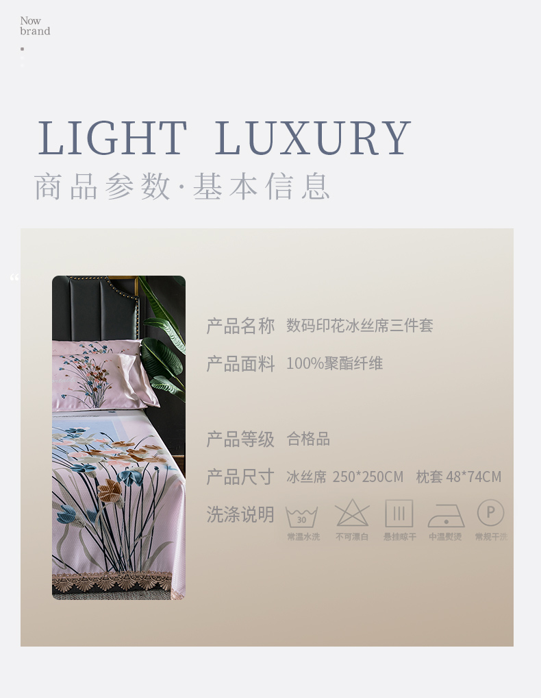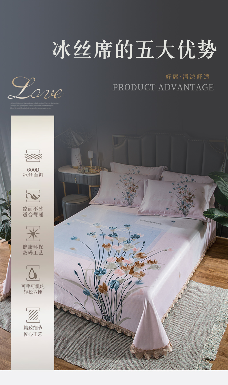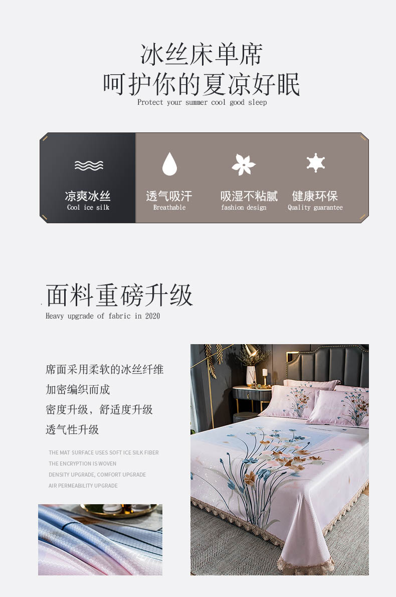 商品名称:其奥家纺 2025新款900d窝蜂冰丝凉席三件套 密语芬芳