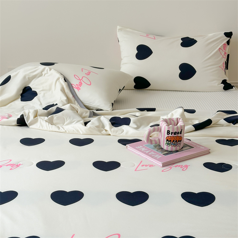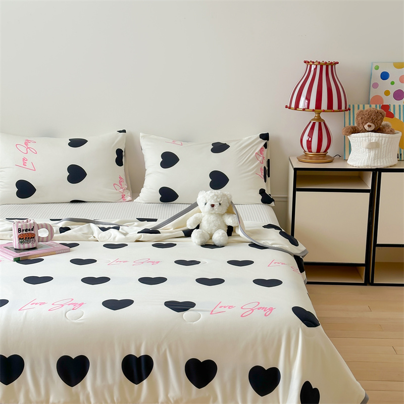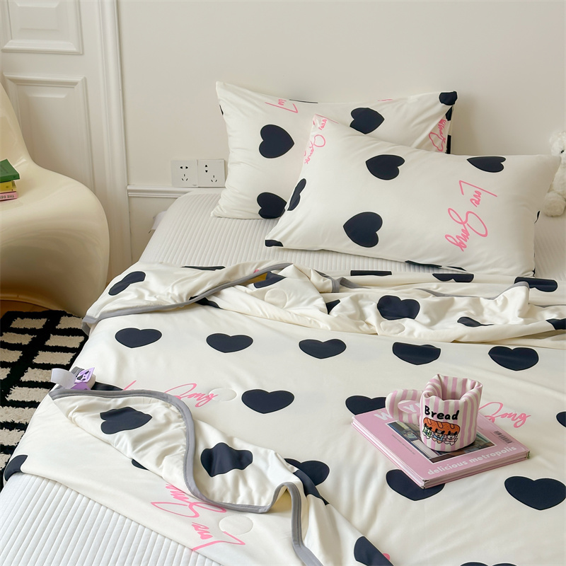 商品名称:觅糖 2024春夏新款针织云柔大豆夏被24组 黑色爱心