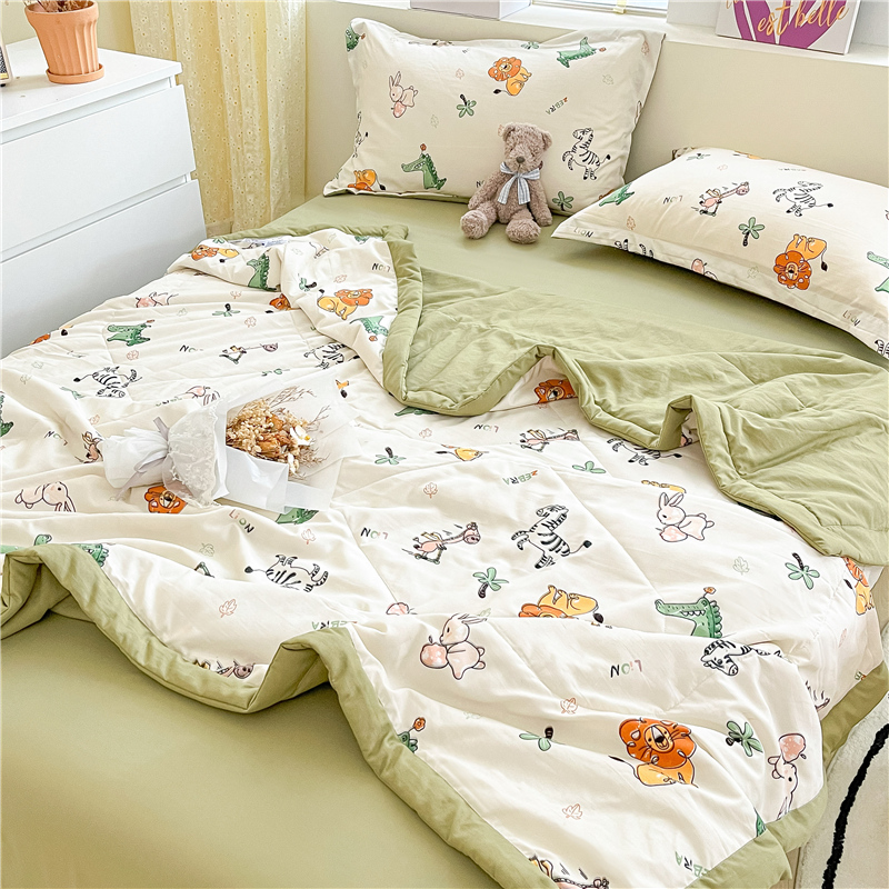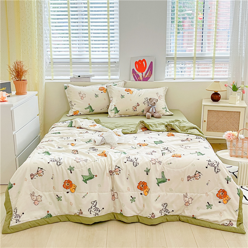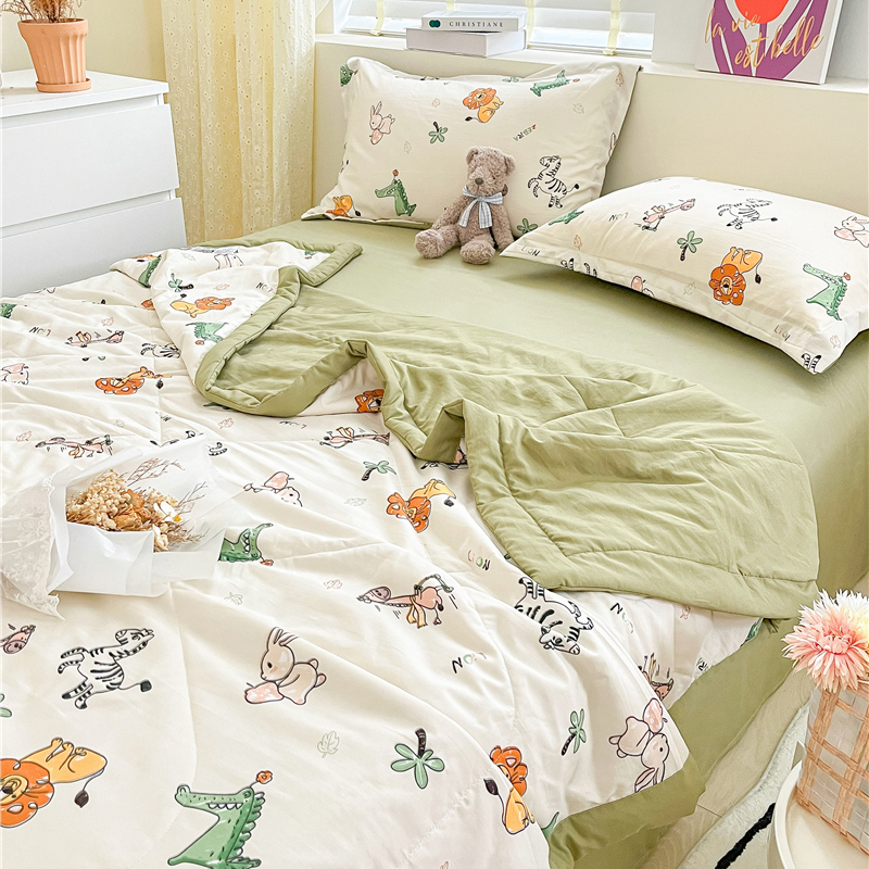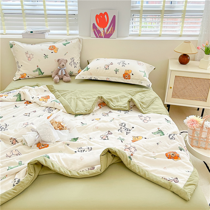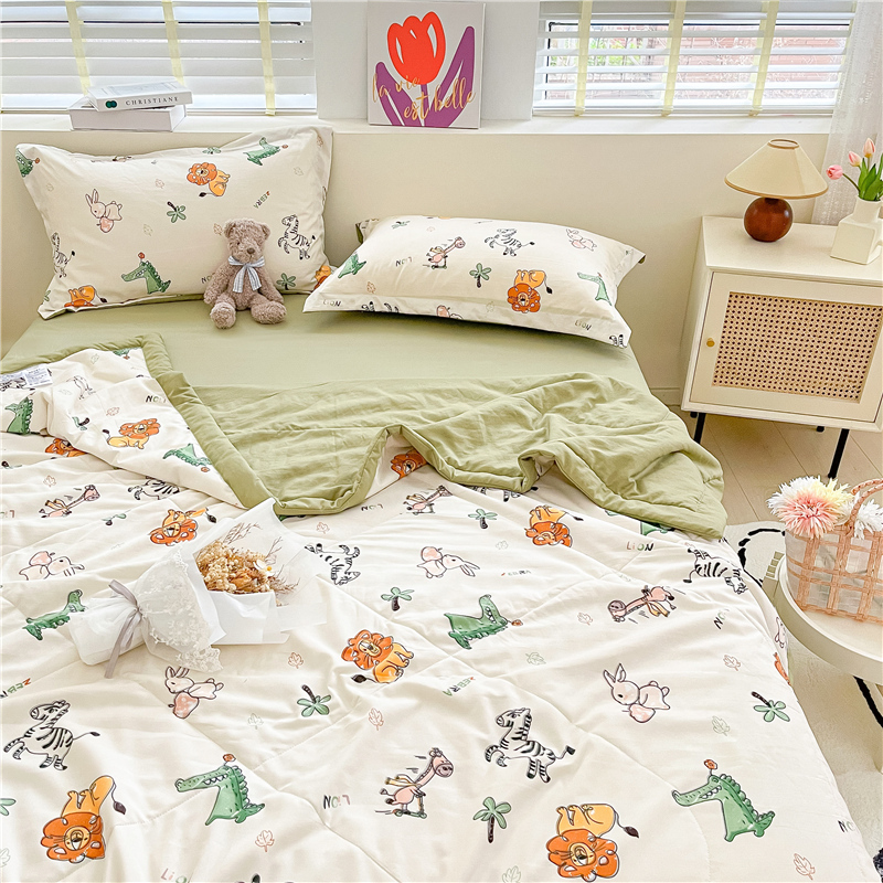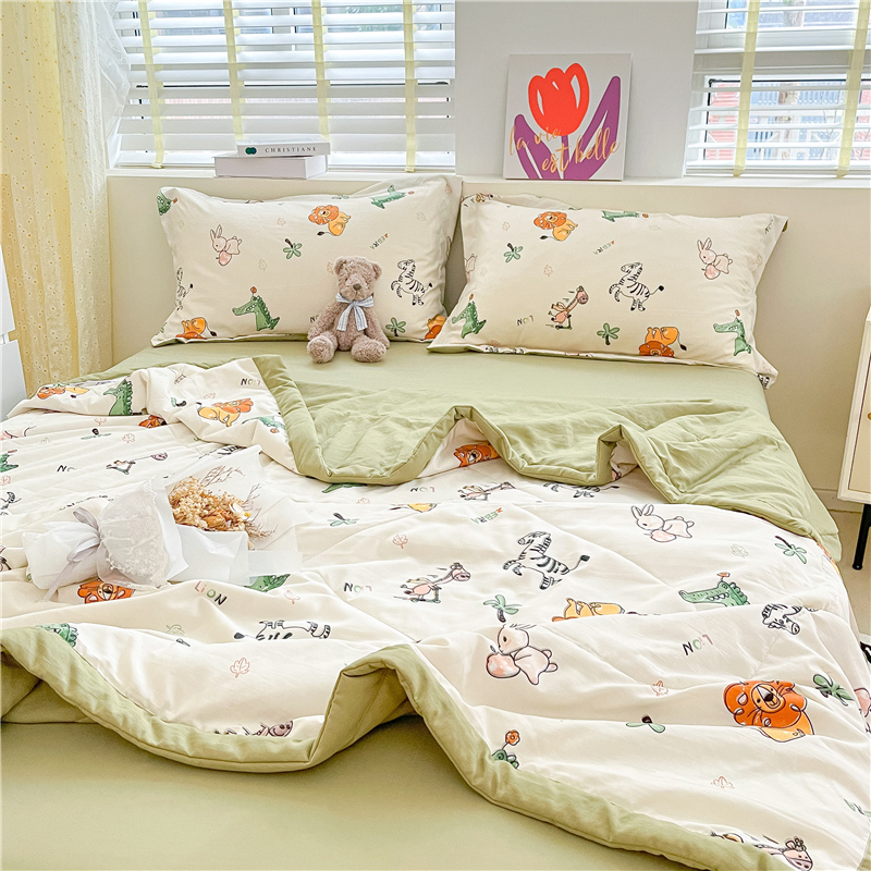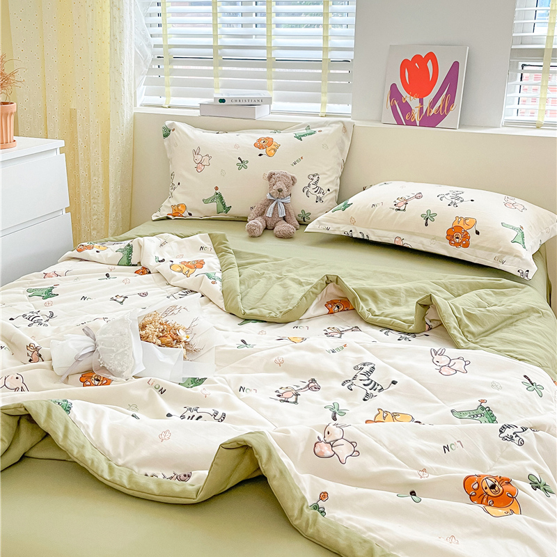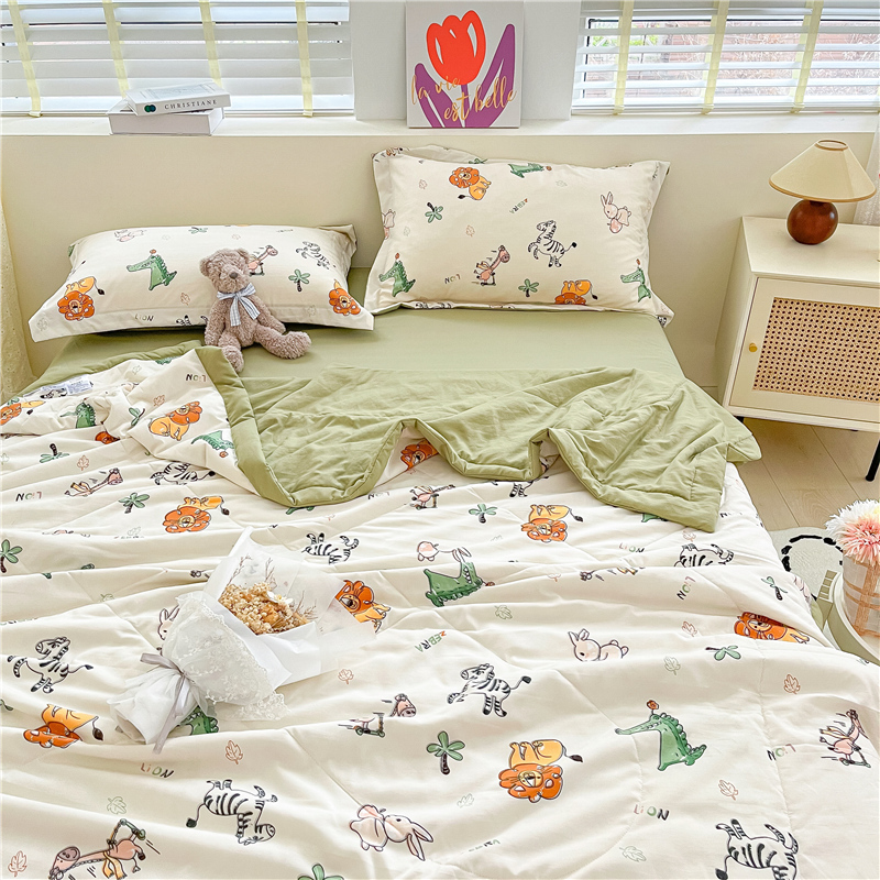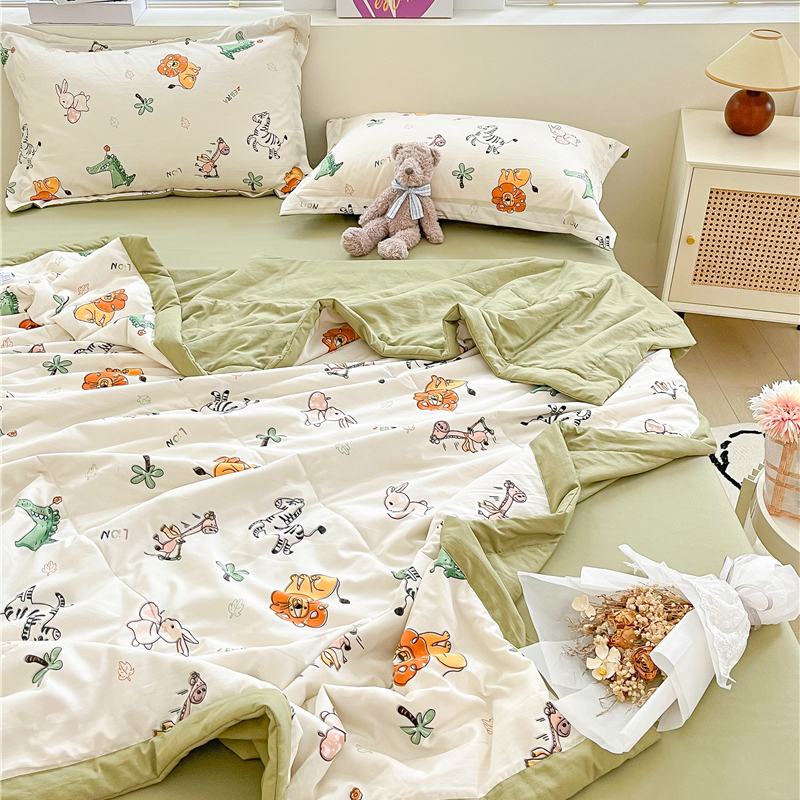 • 91家纺网 家纺一手货源 找家纺 梵克保罗 2024新款春夏水洗棉麻双层纱夏被四件套 童趣乐园