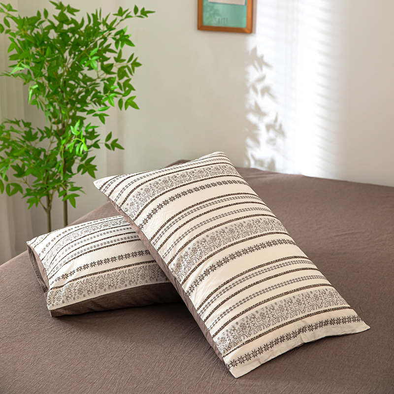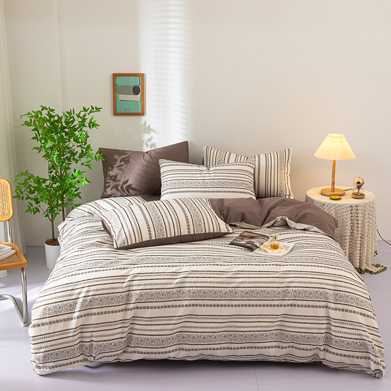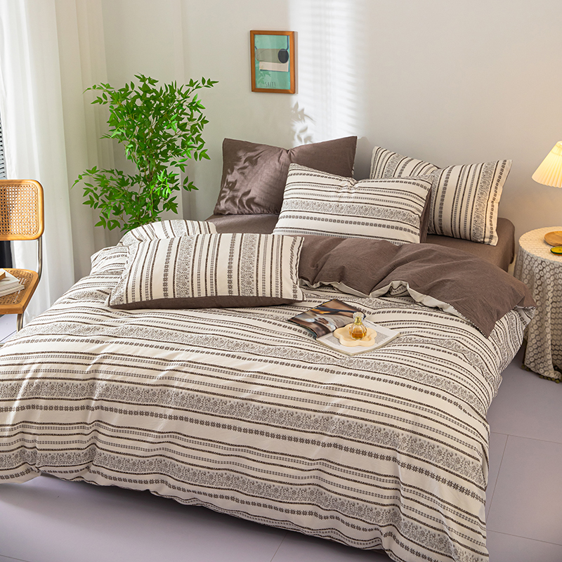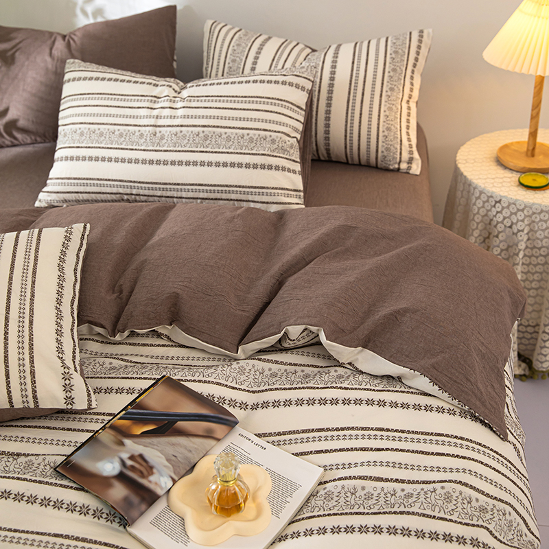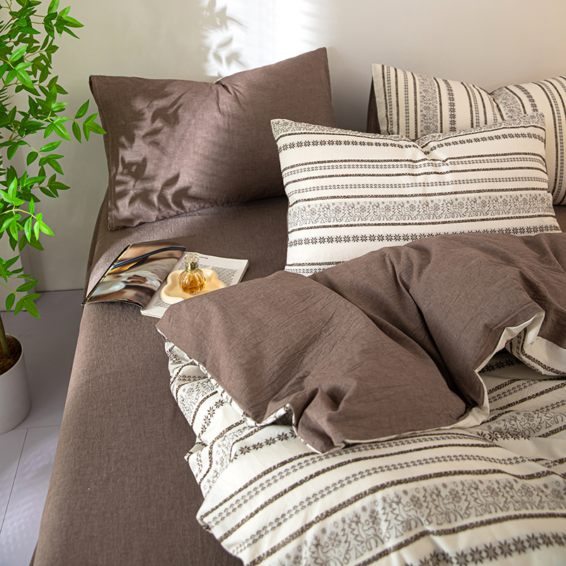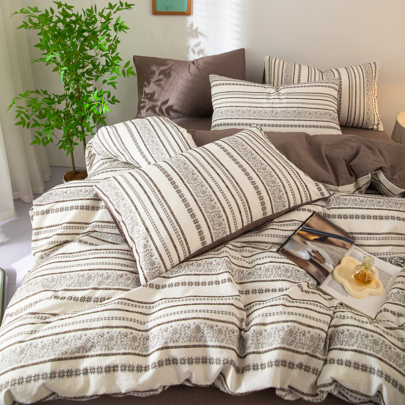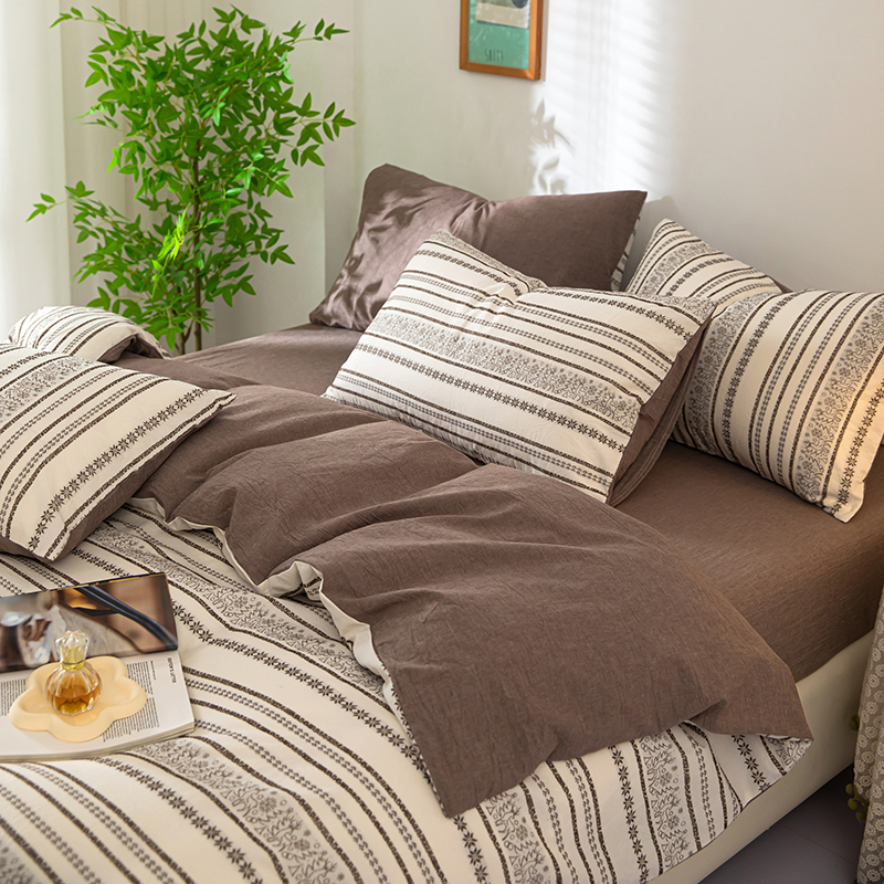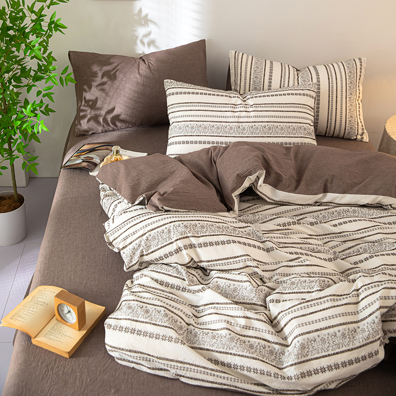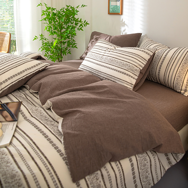 商品名称:木兰花 2024新款小众全棉色织提花水洗棉四件套-林深见鹿 林深见鹿咖