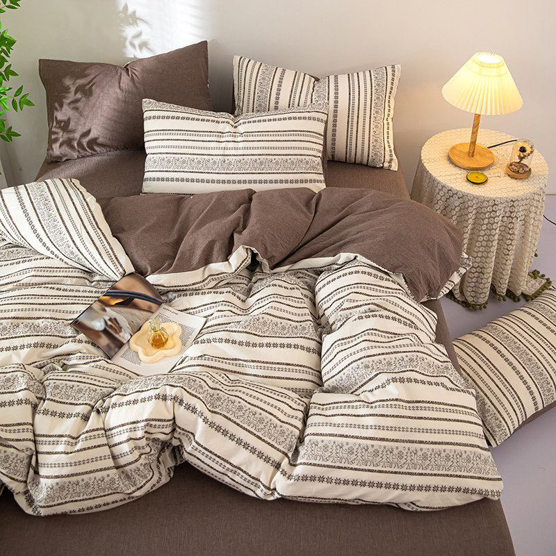 木兰花 2024新款小众全棉色织提花水洗棉四件套-林深见鹿 林深见鹿咖