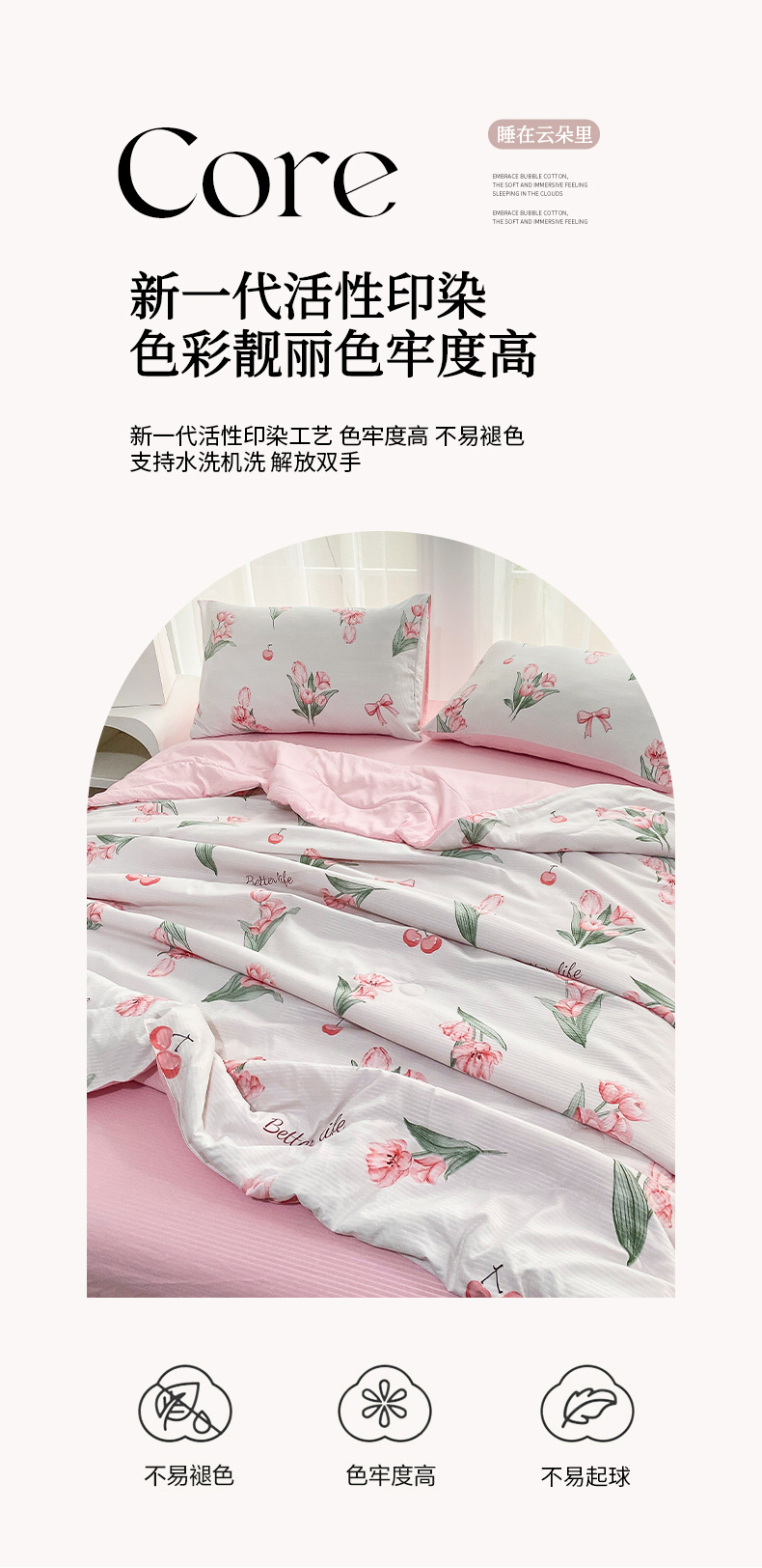 (总)寐时代 2024新款A类有氧提花水洗泡泡棉四件套,心动,安吉拉,安妮,暗香,芭蕾少女,草莓乐园,春意,格子熊,公仔派对,猫咪日记,南法假日,南瓜派对,暖暖,泡泡熊,甜茶,夕颜,小苍兰,小情歌,樱桃熊,紫色浪漫