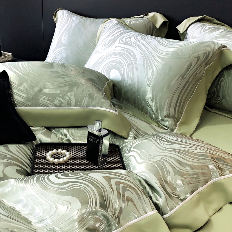 (总)博纳家纺 2025新款镂空大宽边拼角高级简奢款亲肤棉四件套-山水提花,繁星蓝,粉玉,高级灰,香槟,象牙白