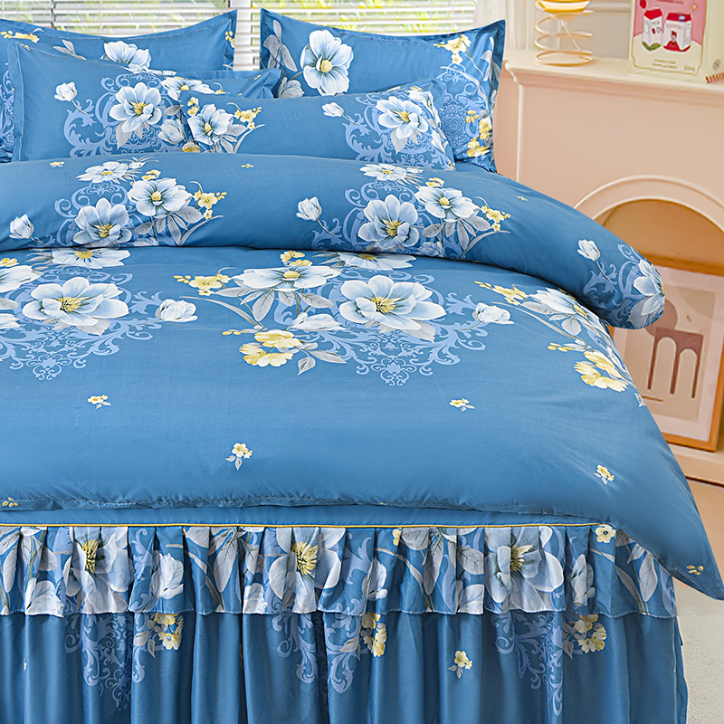 当前位置: 91家纺网 > 商品网购 > 床品套件 > 四件套 > 其它四件套 > 小雨家纺 2026新款芦荟棉床裙四件套 花枝招展-兰