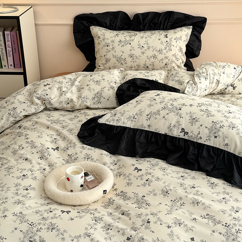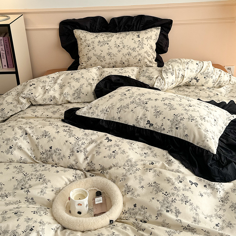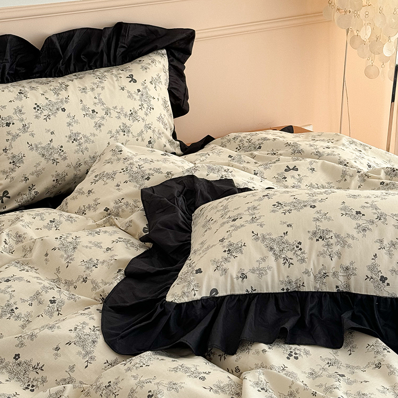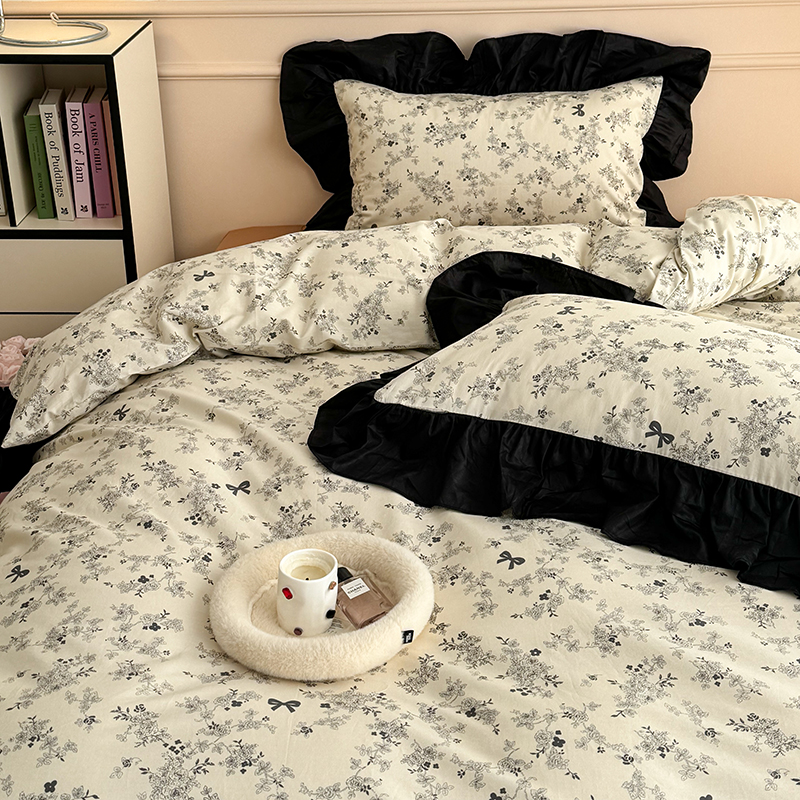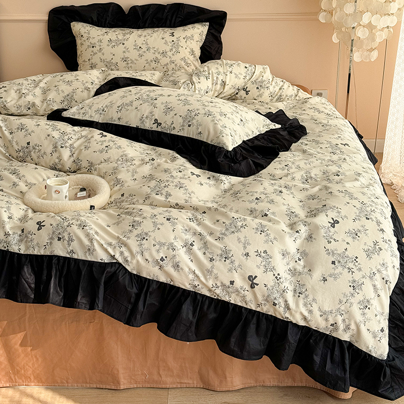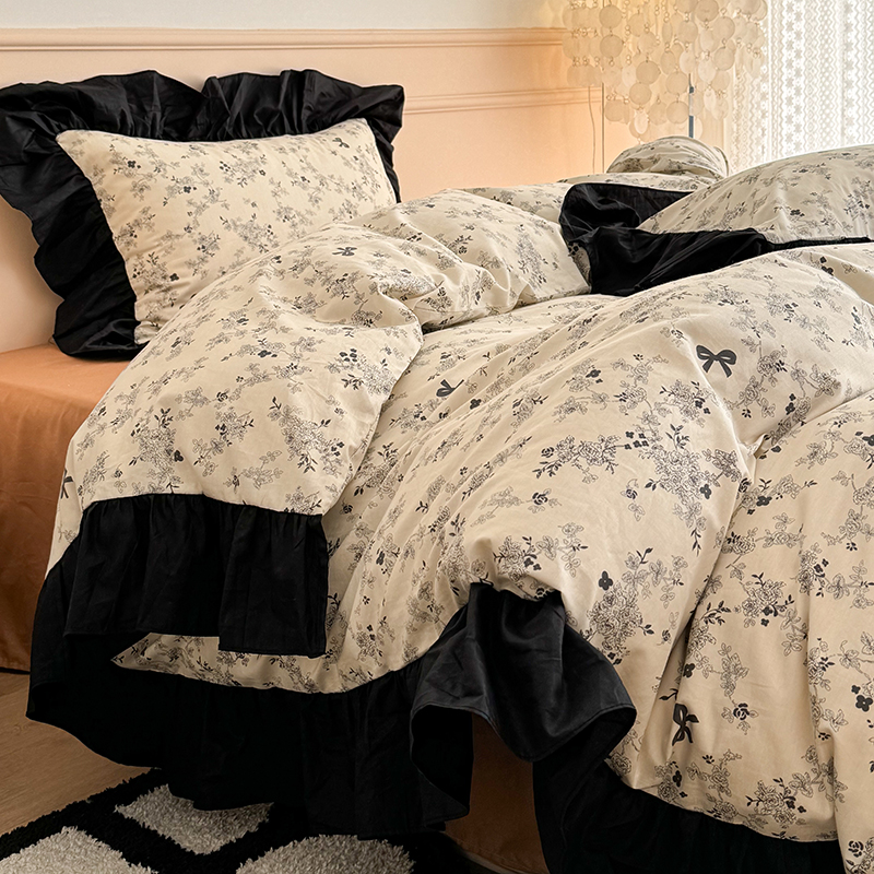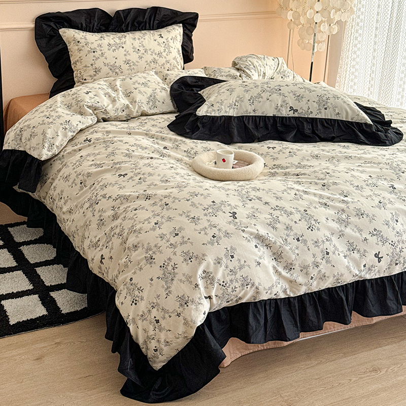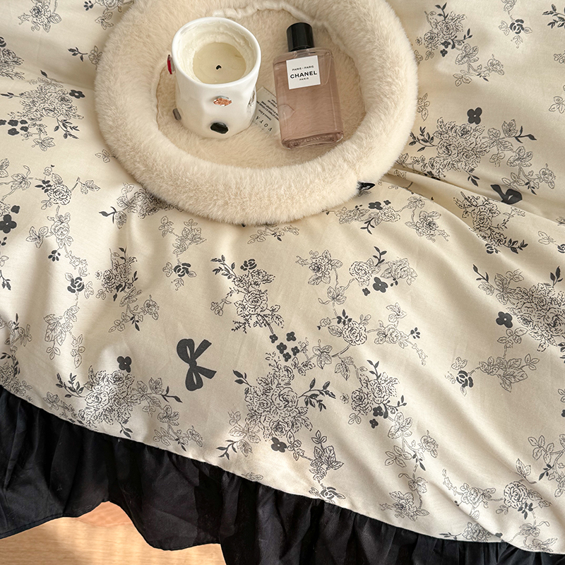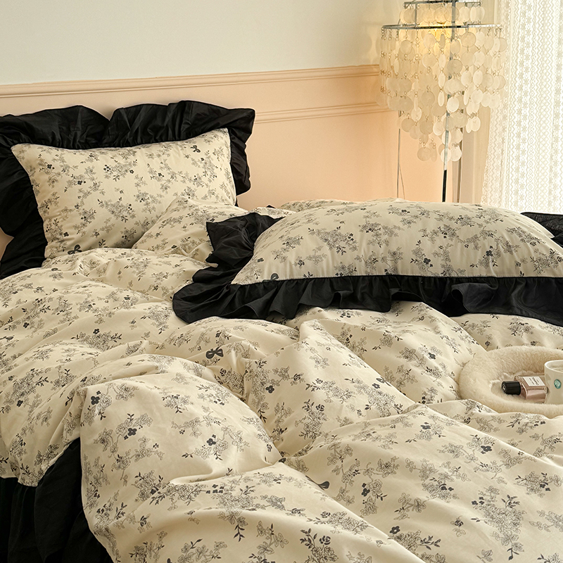 昔可 新款单层大黑边复古花轻奢风四件套 花影蝴蝶