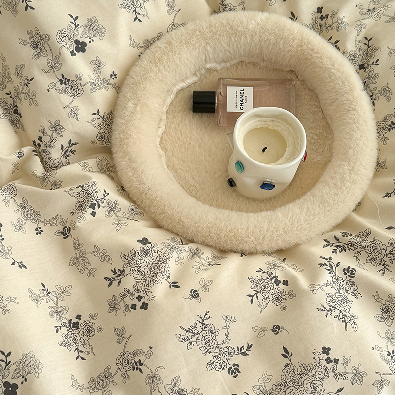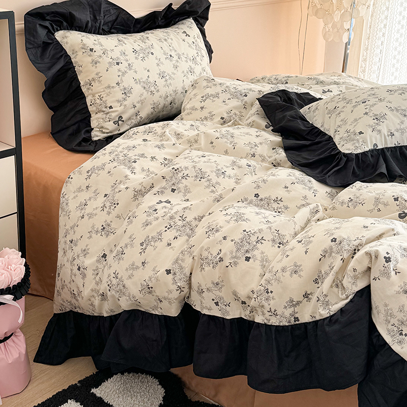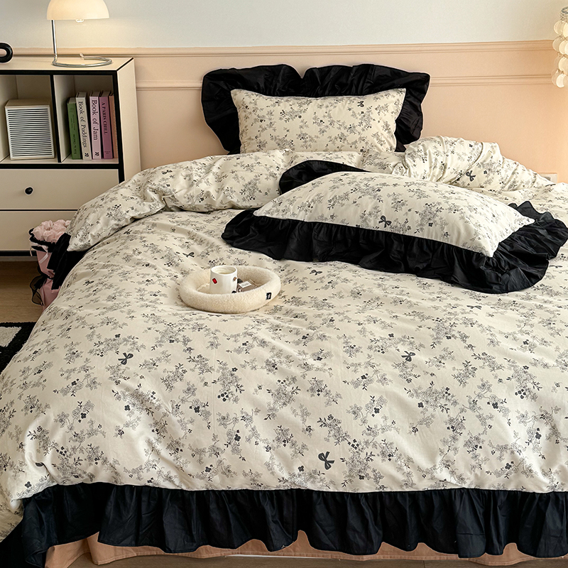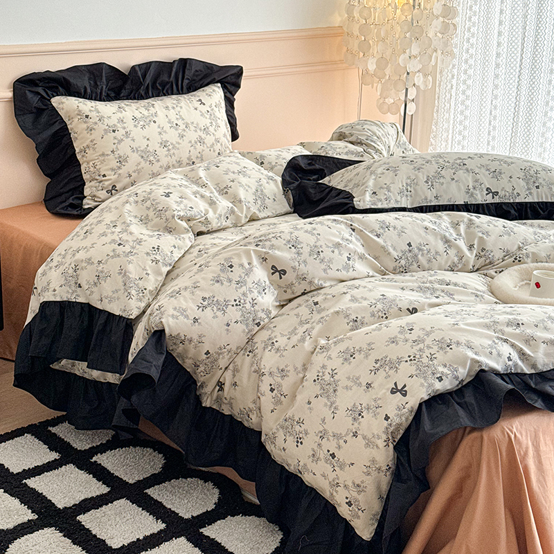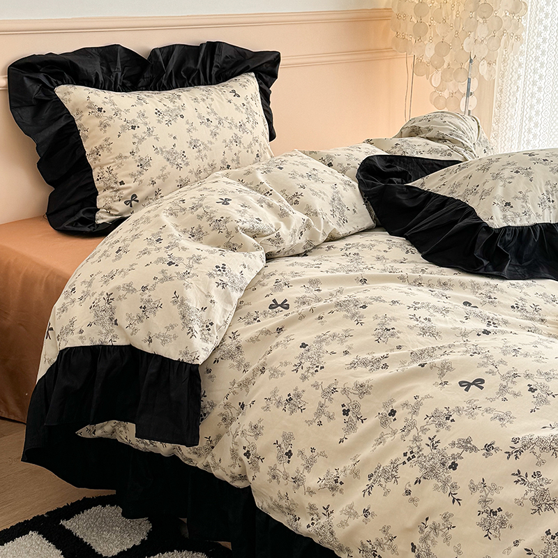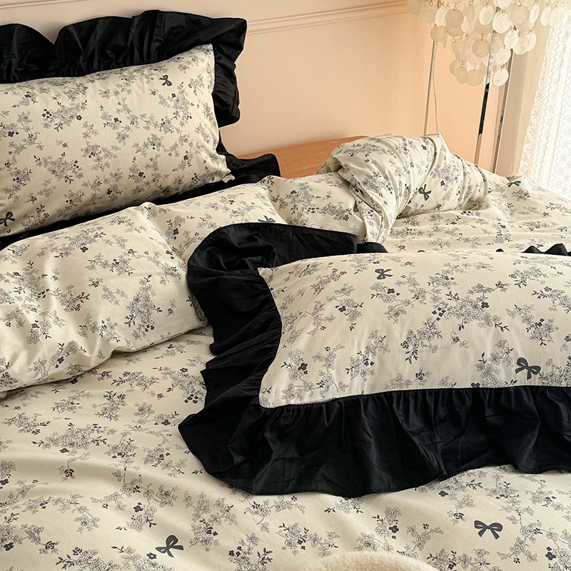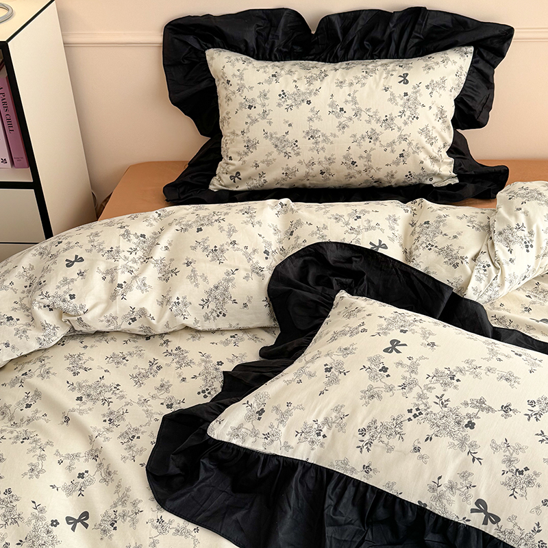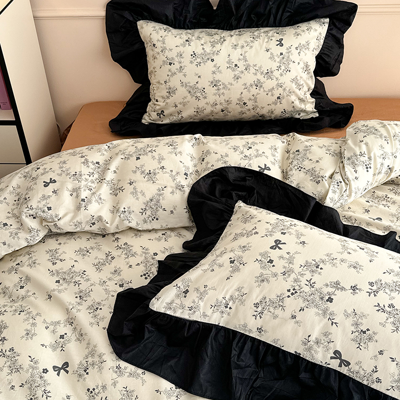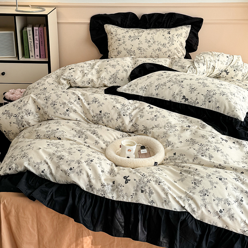 昔可 新款单层大黑边复古花轻奢风四件套 花影蝴蝶