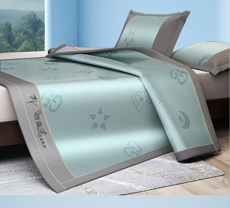 宜派家纺 2024新款碳光绣花凉感冰藤席 星月-水绿