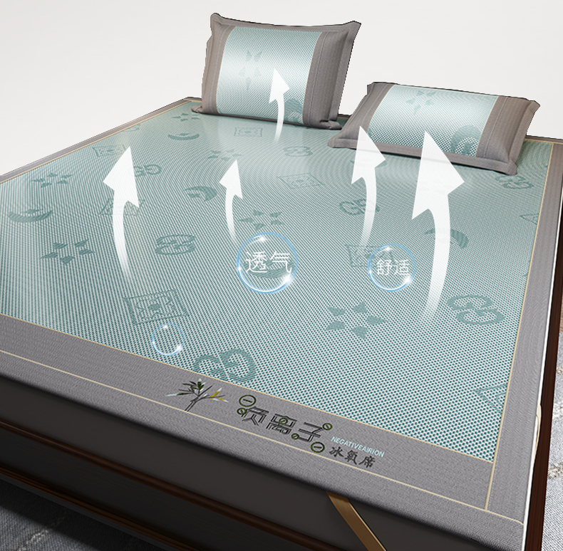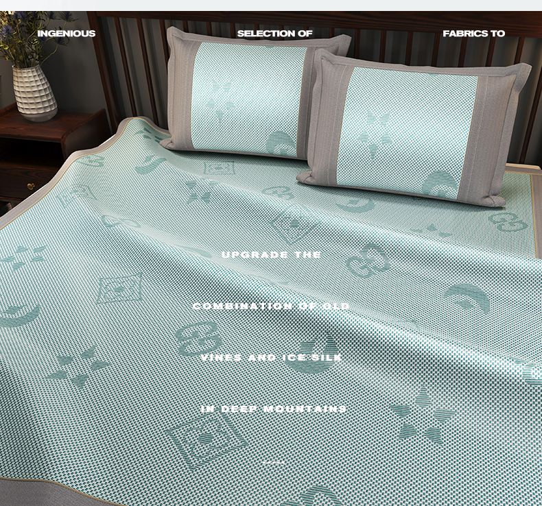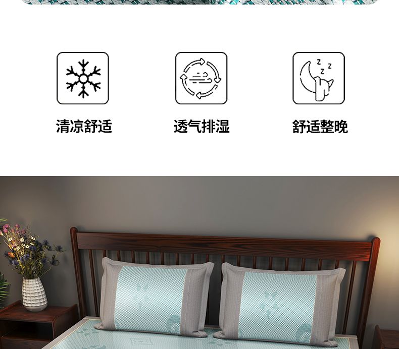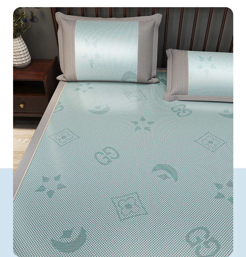 商品名称:宜派家纺 2024新款碳光绣花凉感冰藤席 星月-水绿
