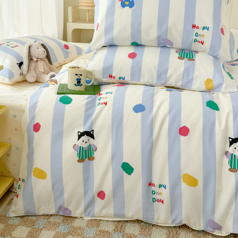 呗旺鹿 2024新款小清新13372全棉四件套纯棉四件套学生三件套 糖果