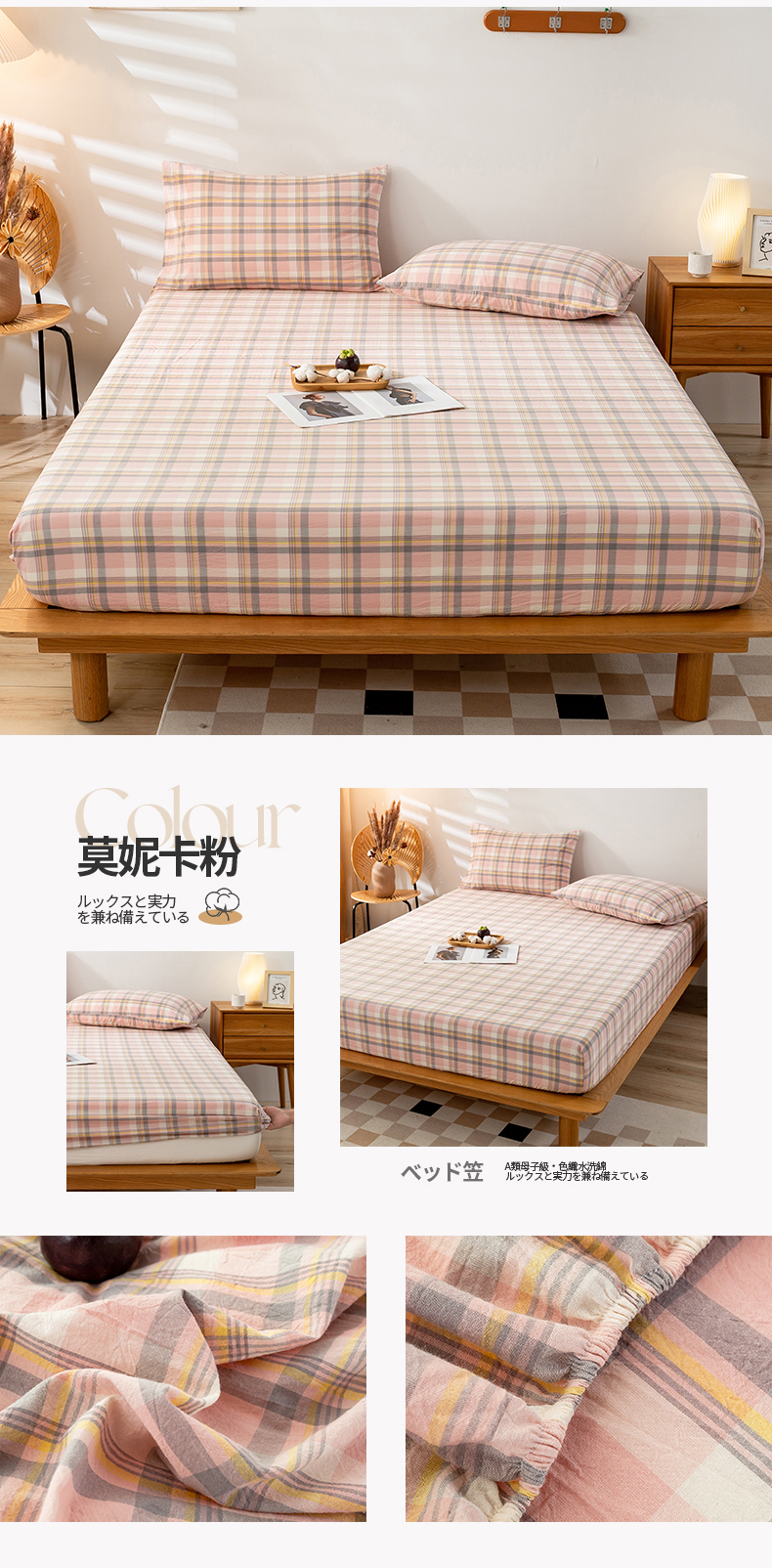 商品名称:萌飞 2024新款A类色织水洗棉床笠 莫妮卡粉