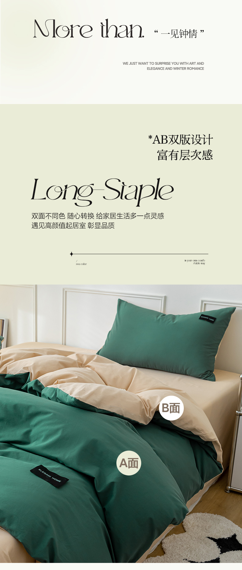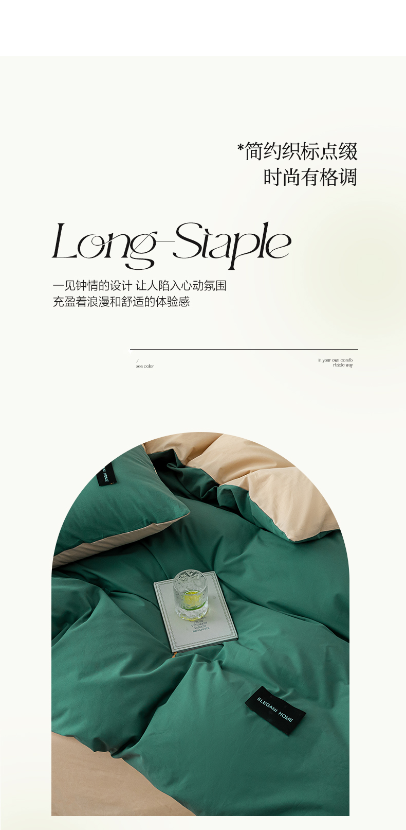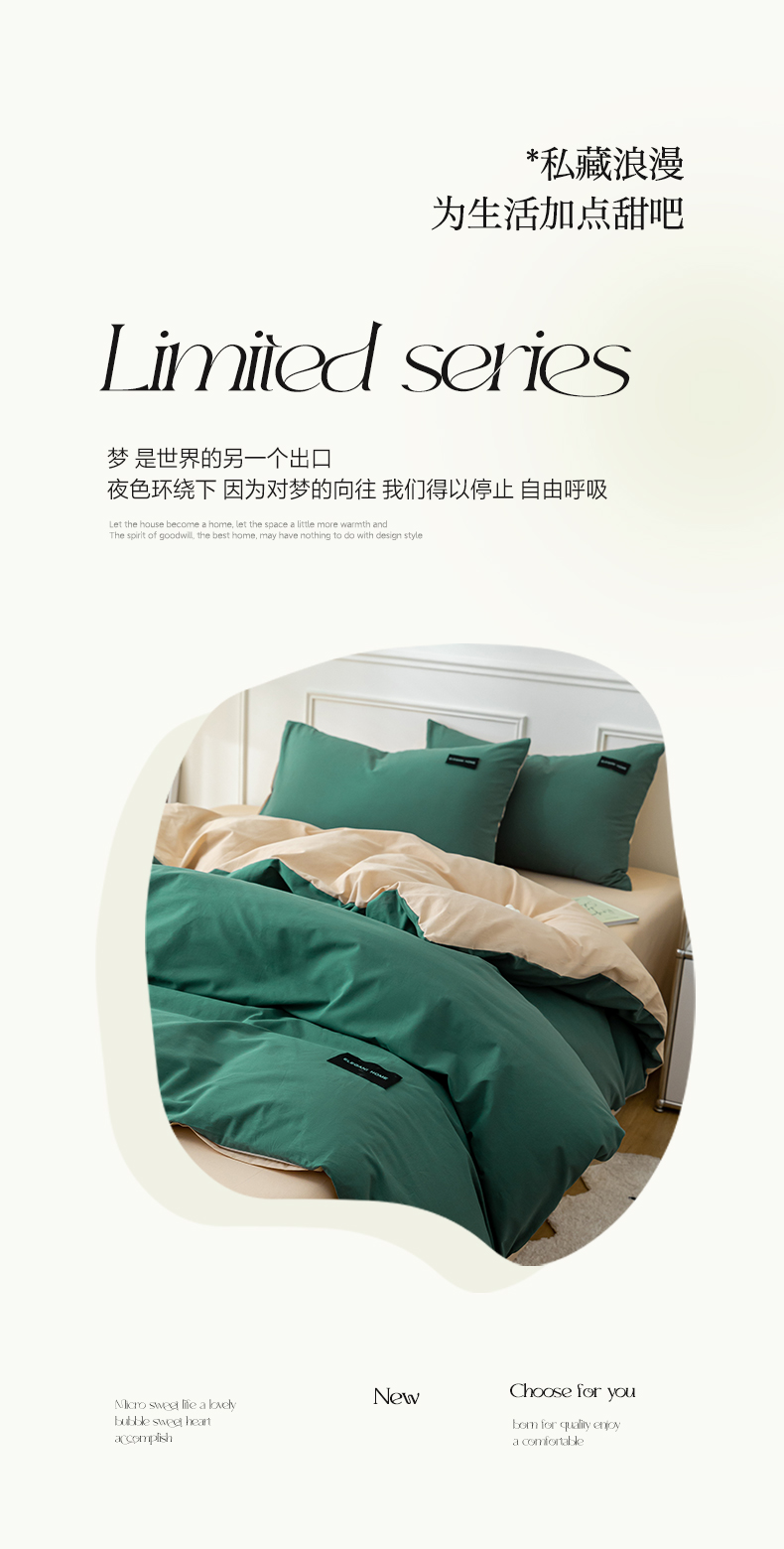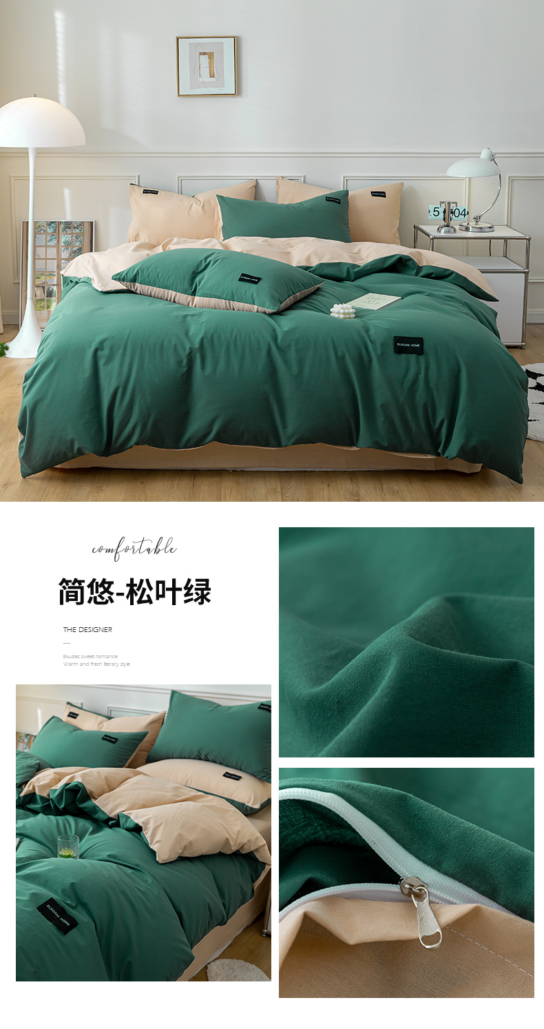 商品名称:九沐良品 新款纯色双拼四件套 简悠-松叶绿