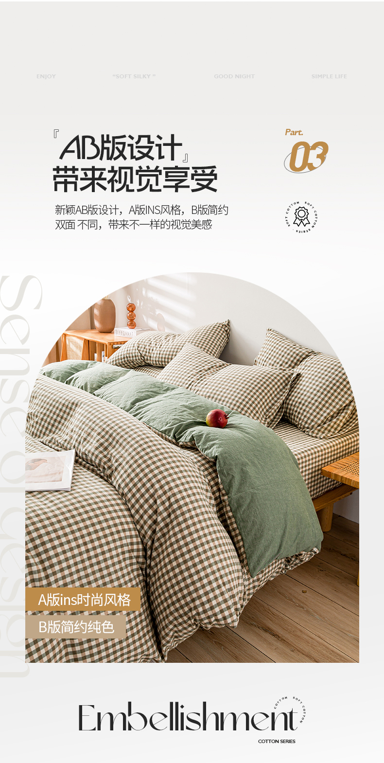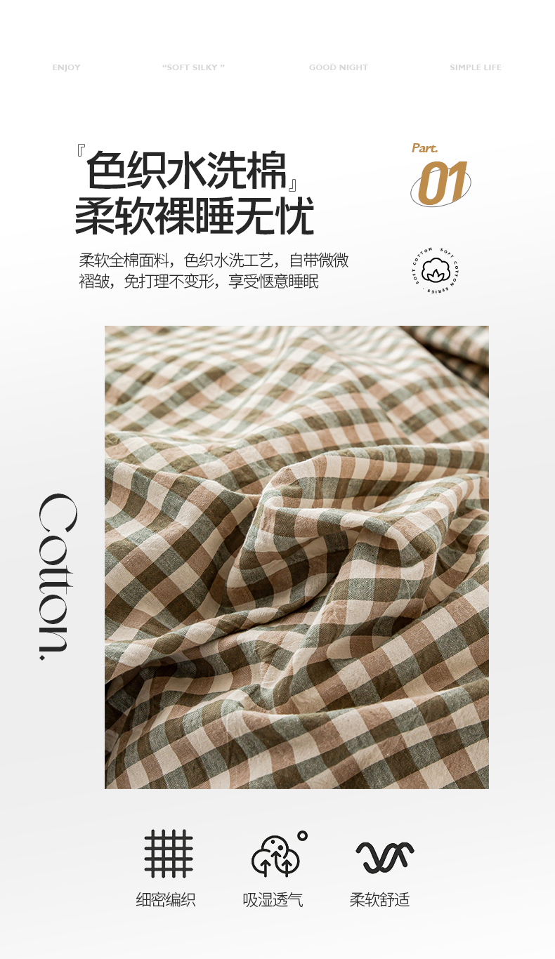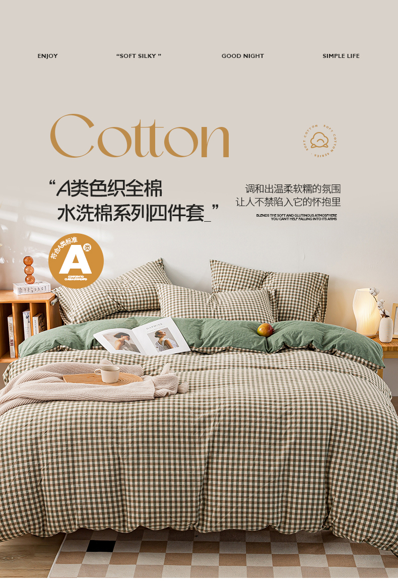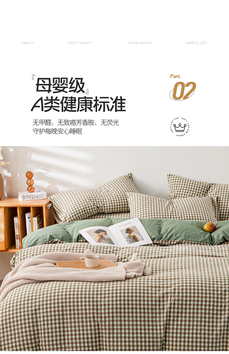 当前位置: 91家纺网 > 商品网购 > 床品套件 > 四件套 > 水洗棉四件套 > 九沐良品 新款A类色织水洗棉四件套 绿小格