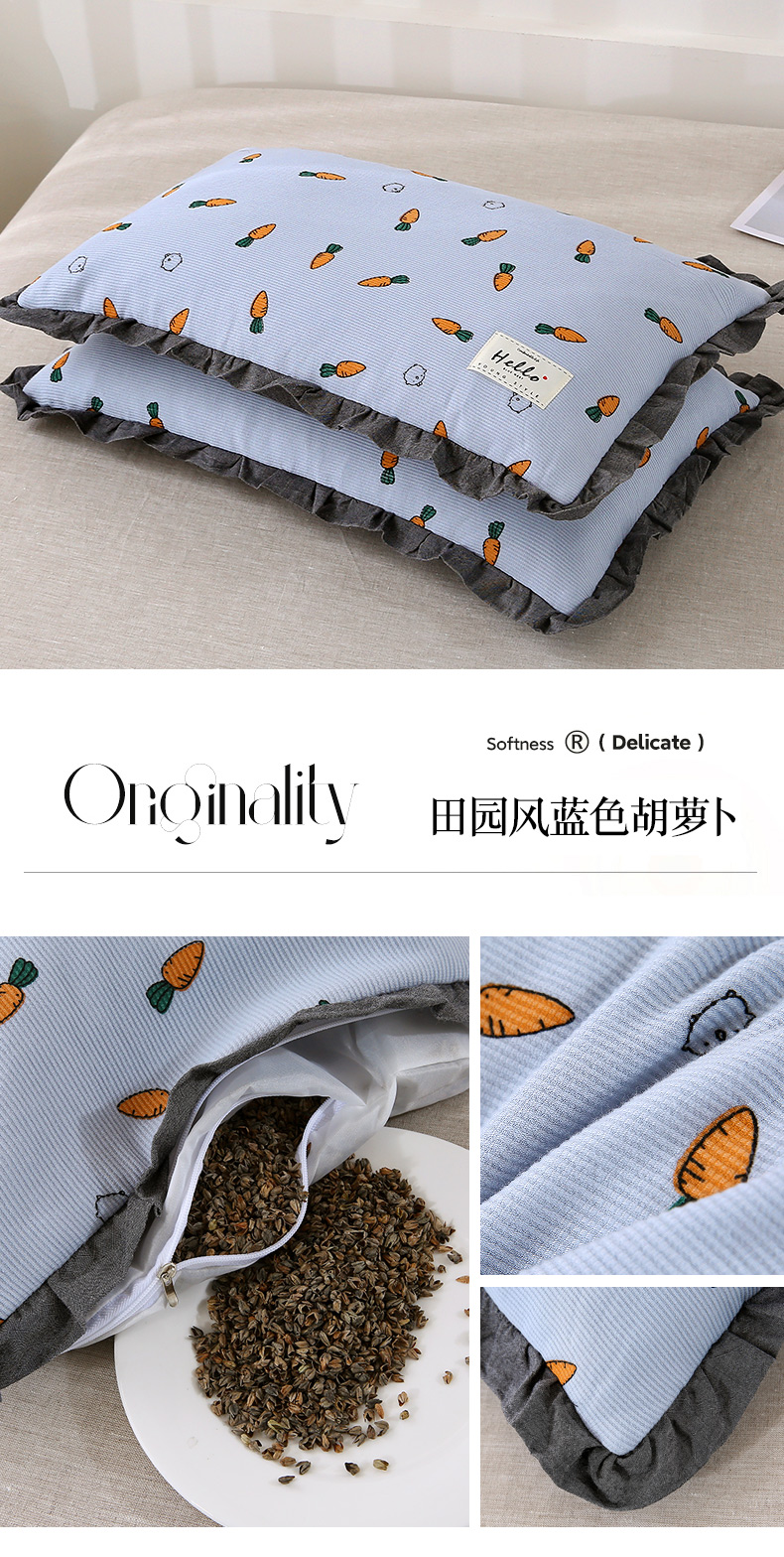 当前位置: 91家纺网 > 商品网购 > 枕头/枕芯/保健枕/颈椎枕 > 普通枕芯 > 梦叶草 2024新款枕芯全棉砂洗田园风系列荷叶边35×55cm全荞麦枕头 田园风蓝色胡萝卜