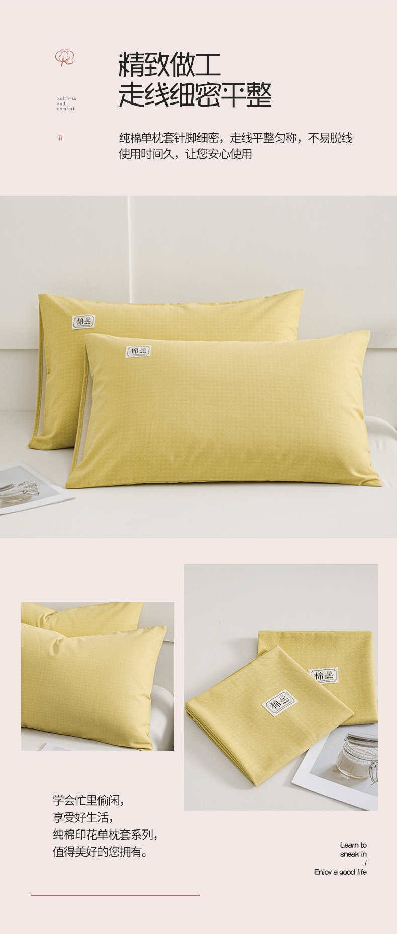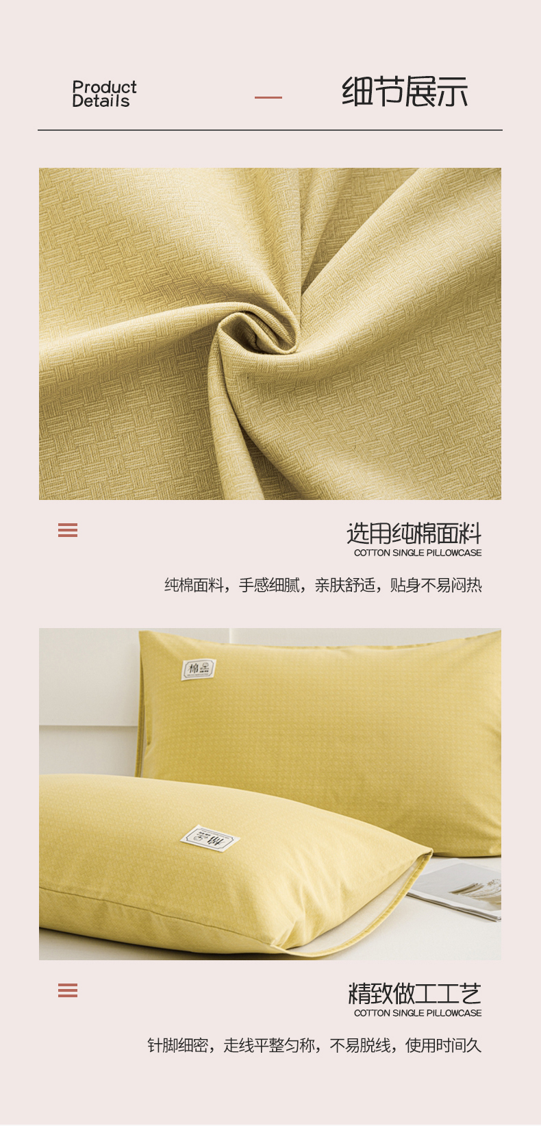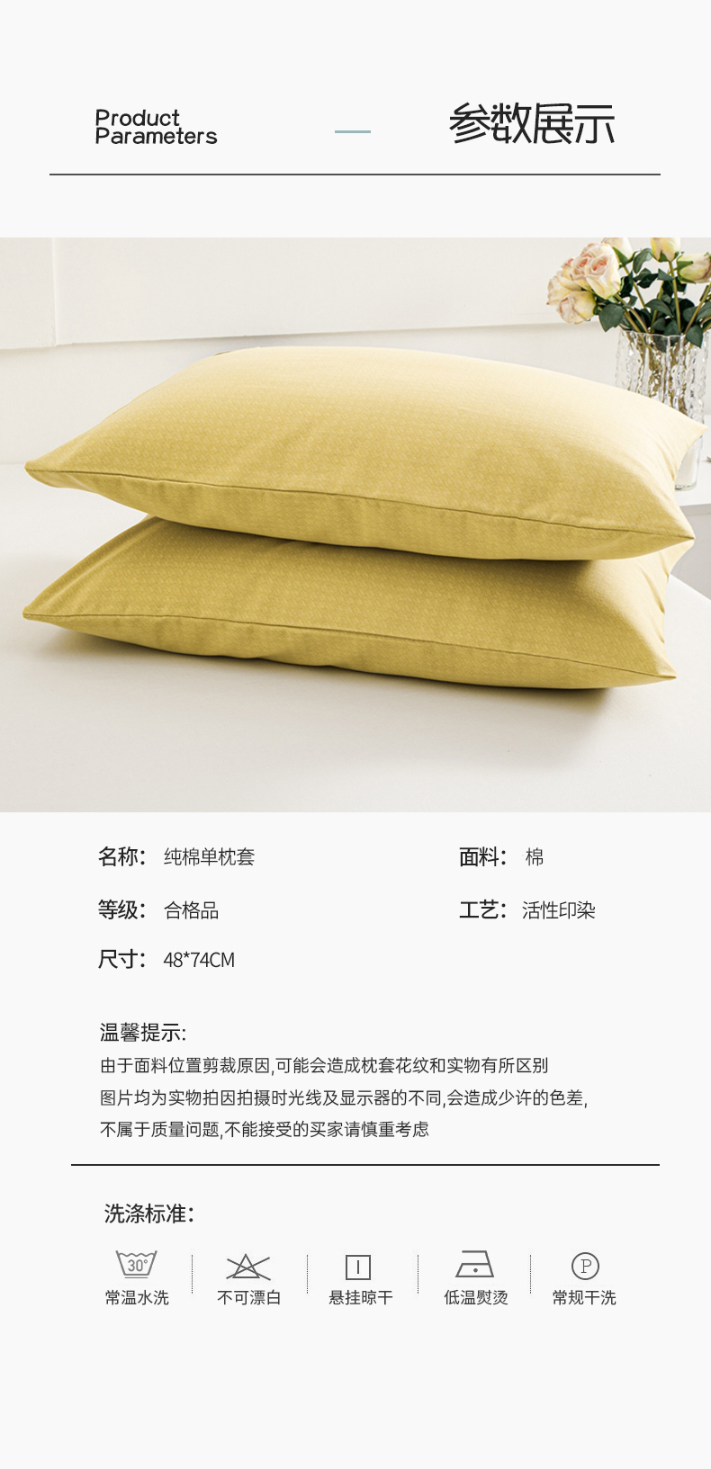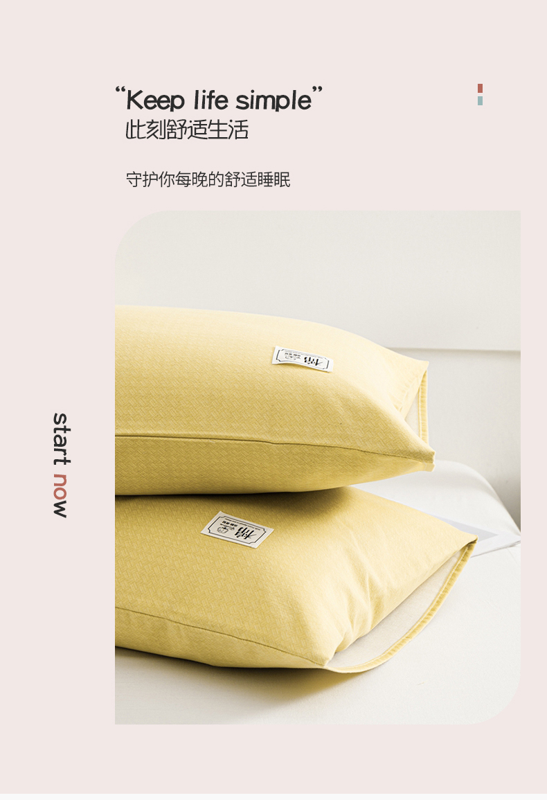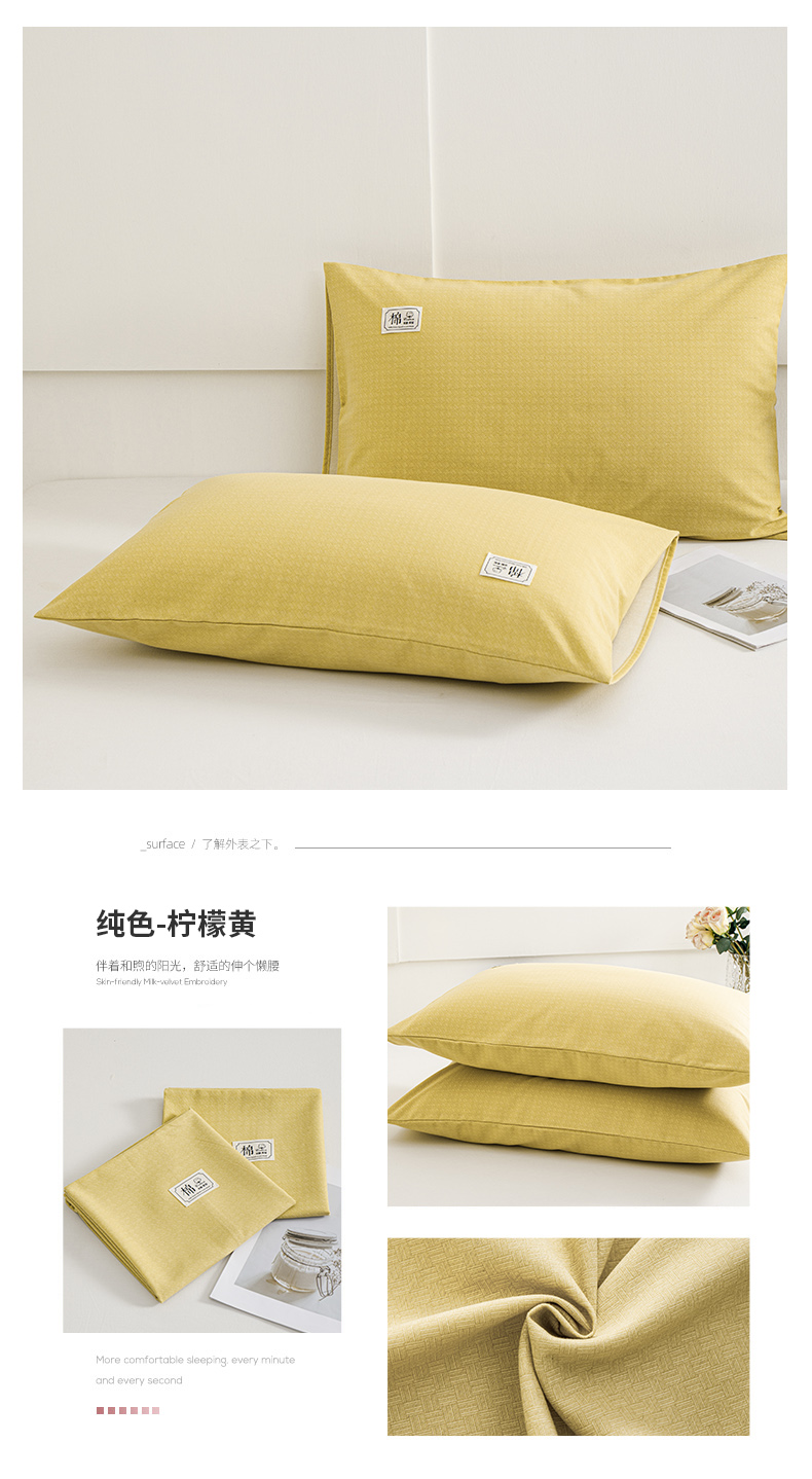 商品名称:宝时兰 2024新款纯色单枕套全棉加厚生态喷气磨毛纯棉口袋枕套 纯色-柠檬黄