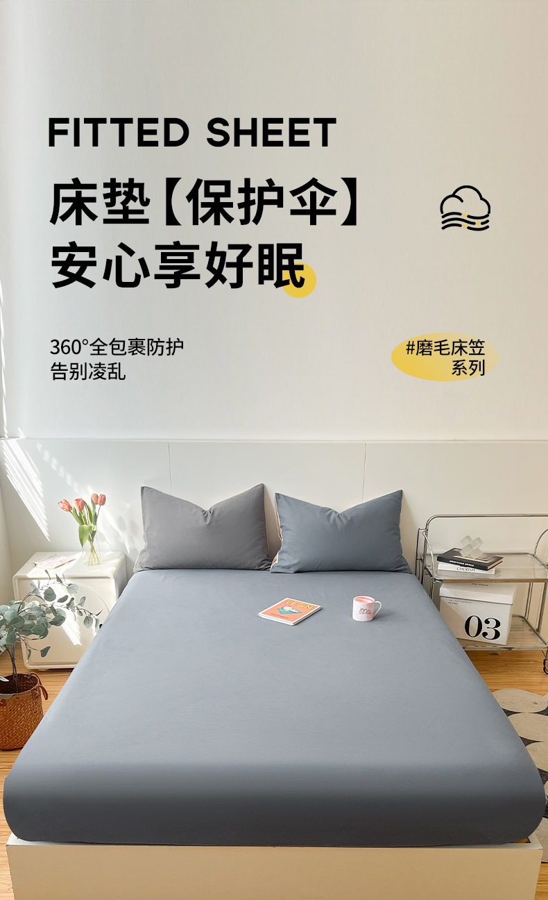 米粒家纺 2024新款纯色磨毛床笠 晴空