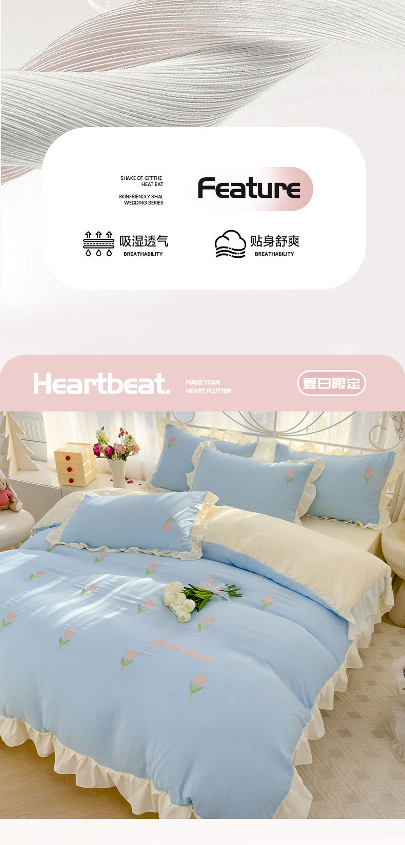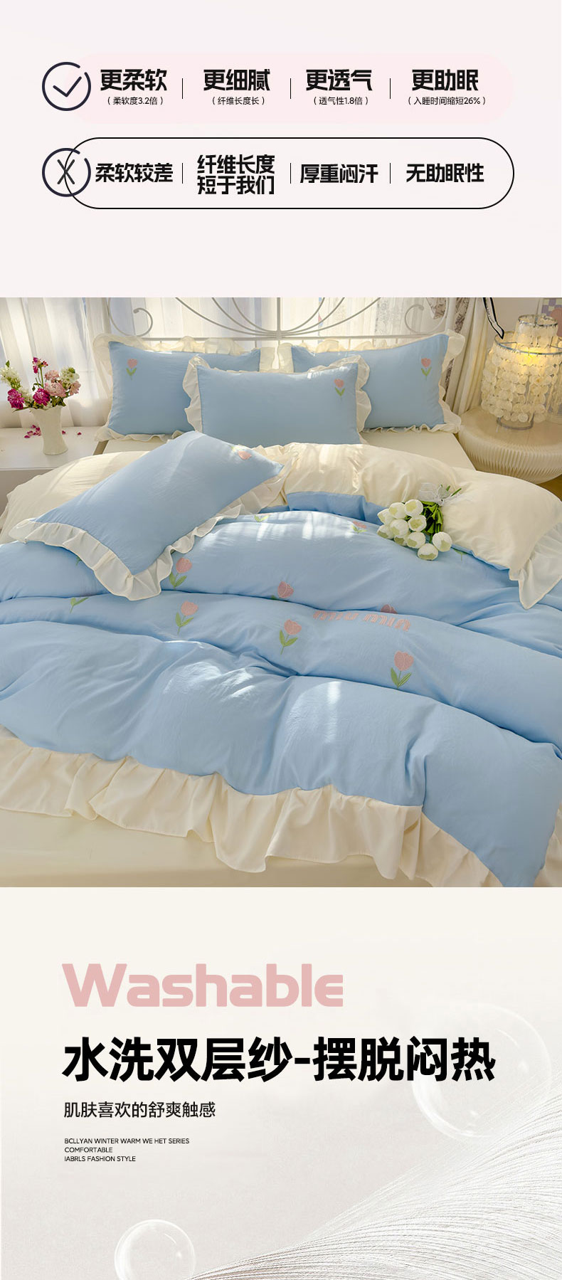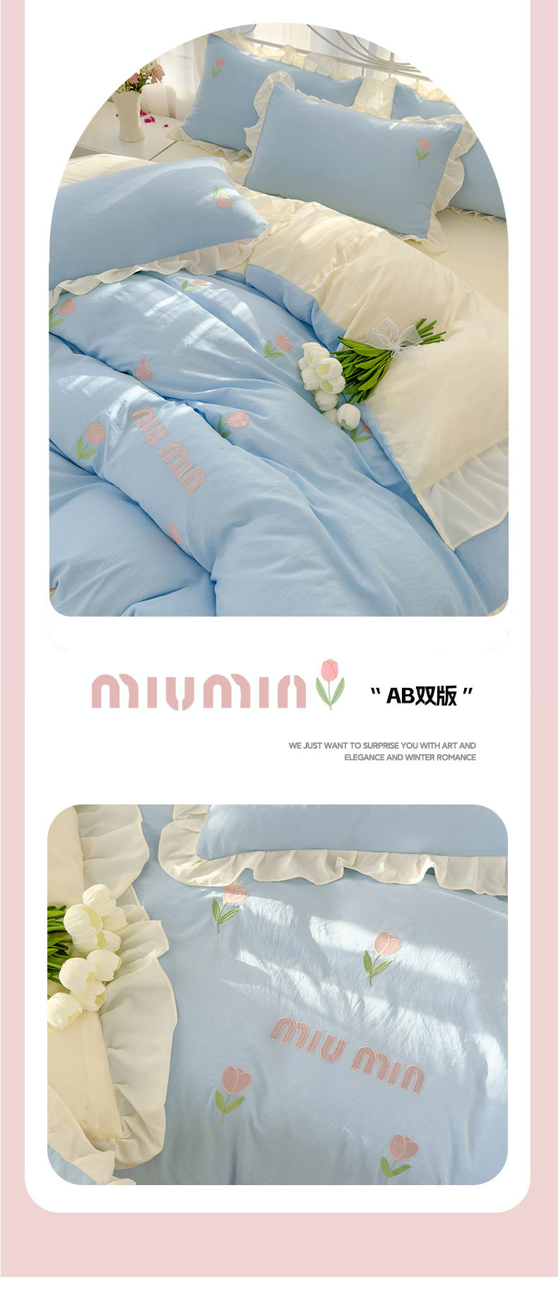 当前位置: 91家纺网 > 商品网购 > 床品套件 > 四件套 > 其它四件套 > 灰鲸 2025新款水洗双层纱miumin郁金香刺绣四件套 miumin郁金香-天空蓝拼奶黄