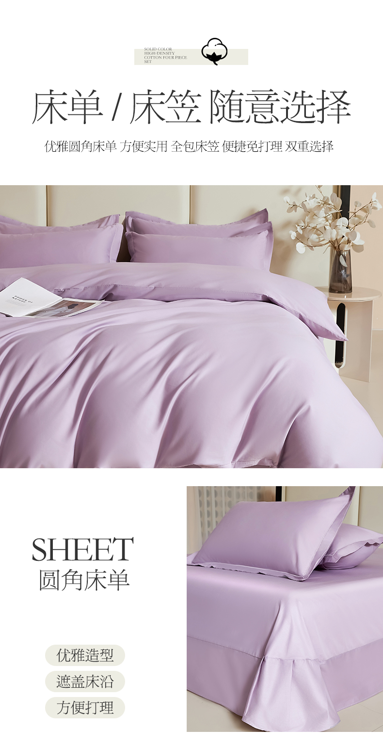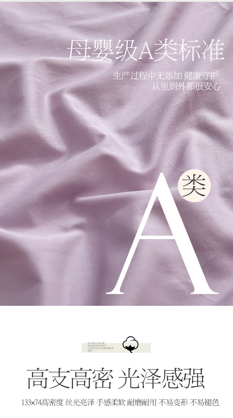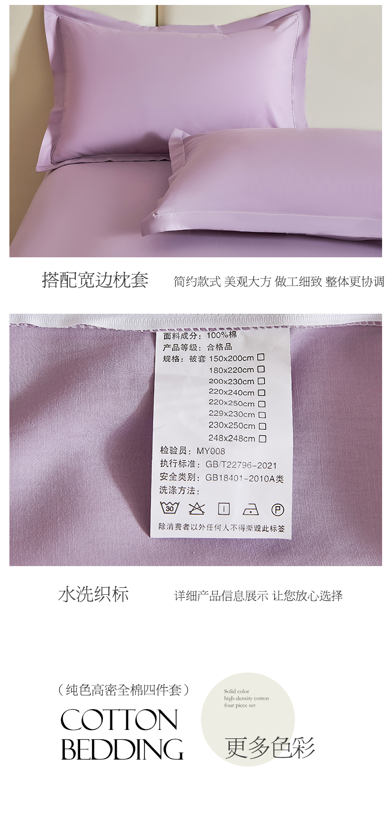 当前位置: 91家纺网 > 商品网购 > 床品套件 > 四件套 > 全棉普通四件套 > 名优家纺 2024新款纯色13374高密全棉四件套 香芋紫