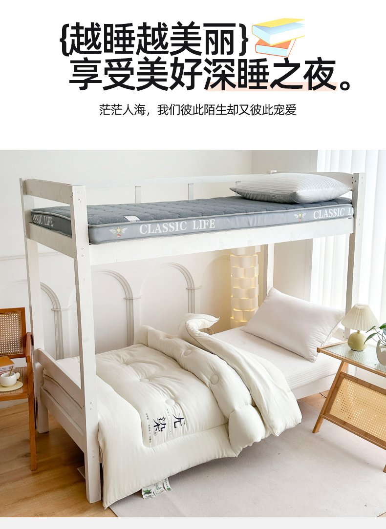• 91家纺网 家纺一手货源 找家纺 (总)招财狼家纺 2025新款学生大礼包三件套被子床垫枕芯,白色,灰色