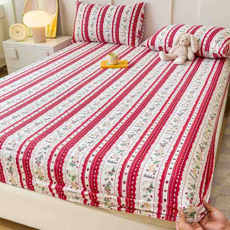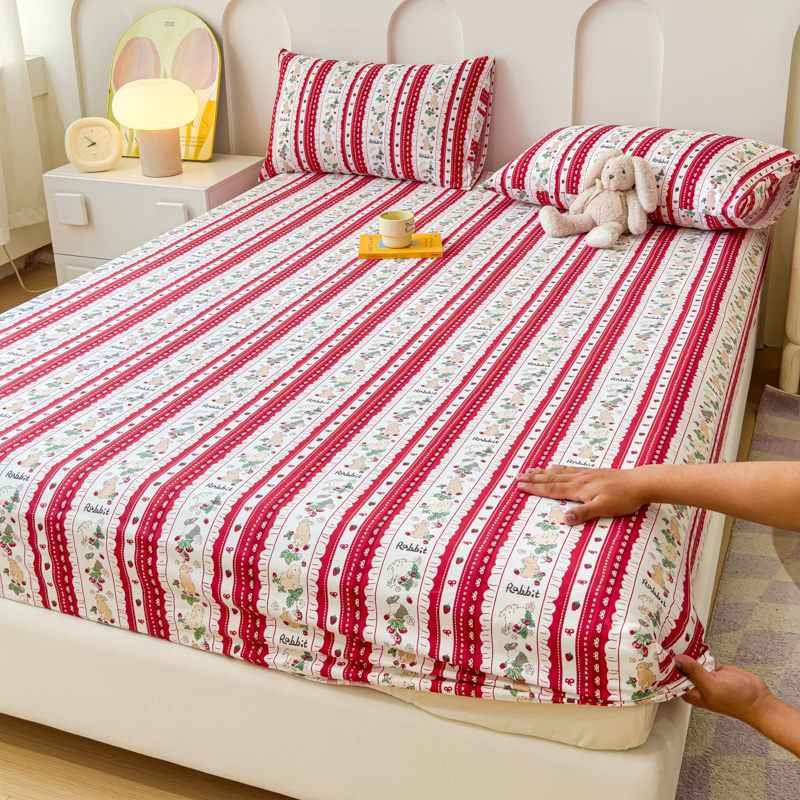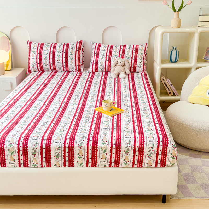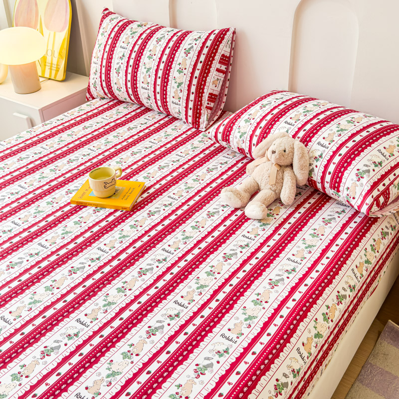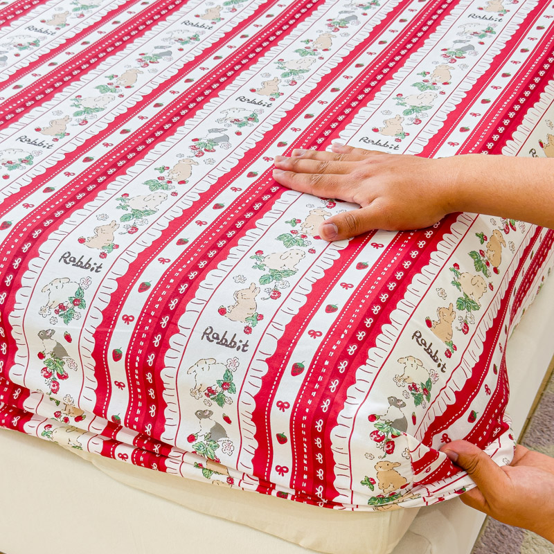 感遇家纺 2024新款纯棉床单床笠枕套 床笠款-草莓小兔