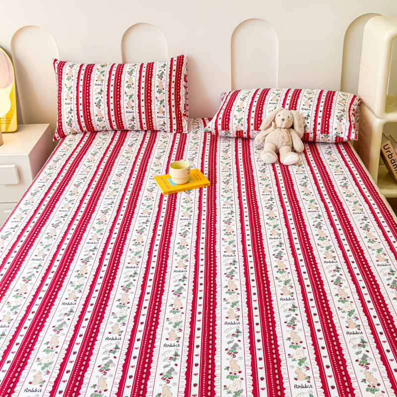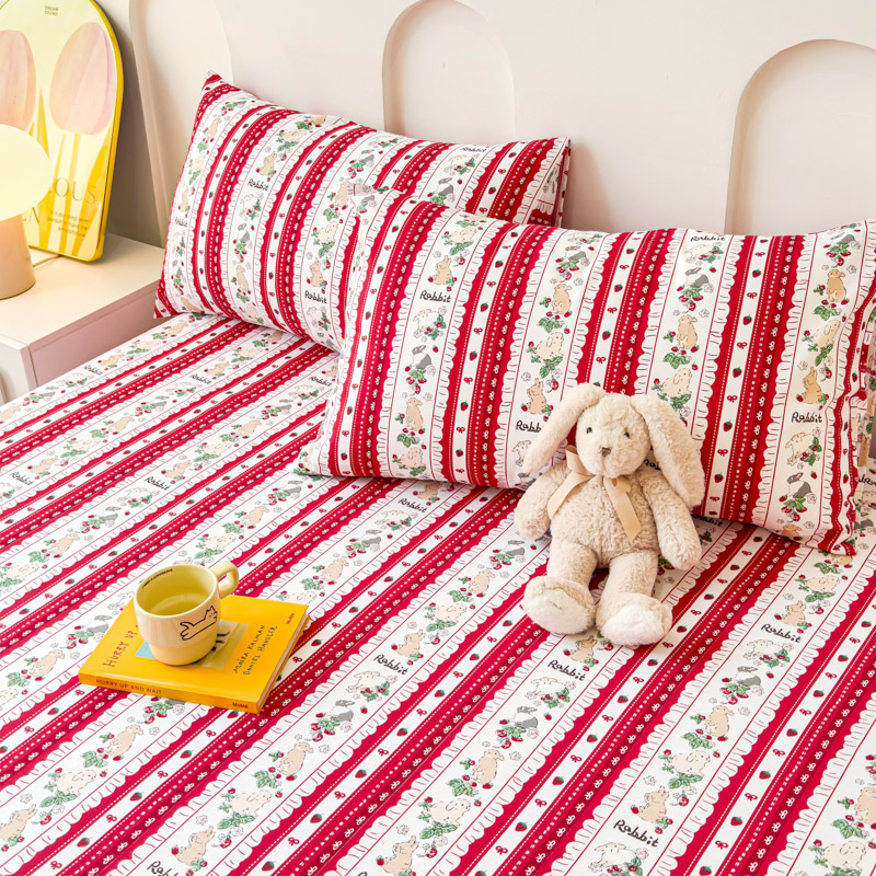 当前位置: 91家纺网 > 商品网购 > 床上用品 > 床单 > 感遇家纺 2024新款纯棉床单床笠枕套 床笠款-草莓小兔