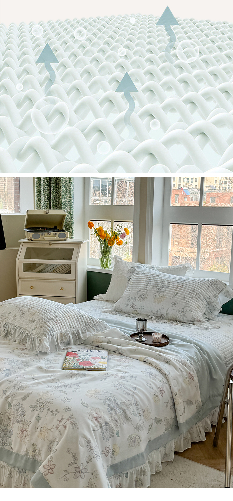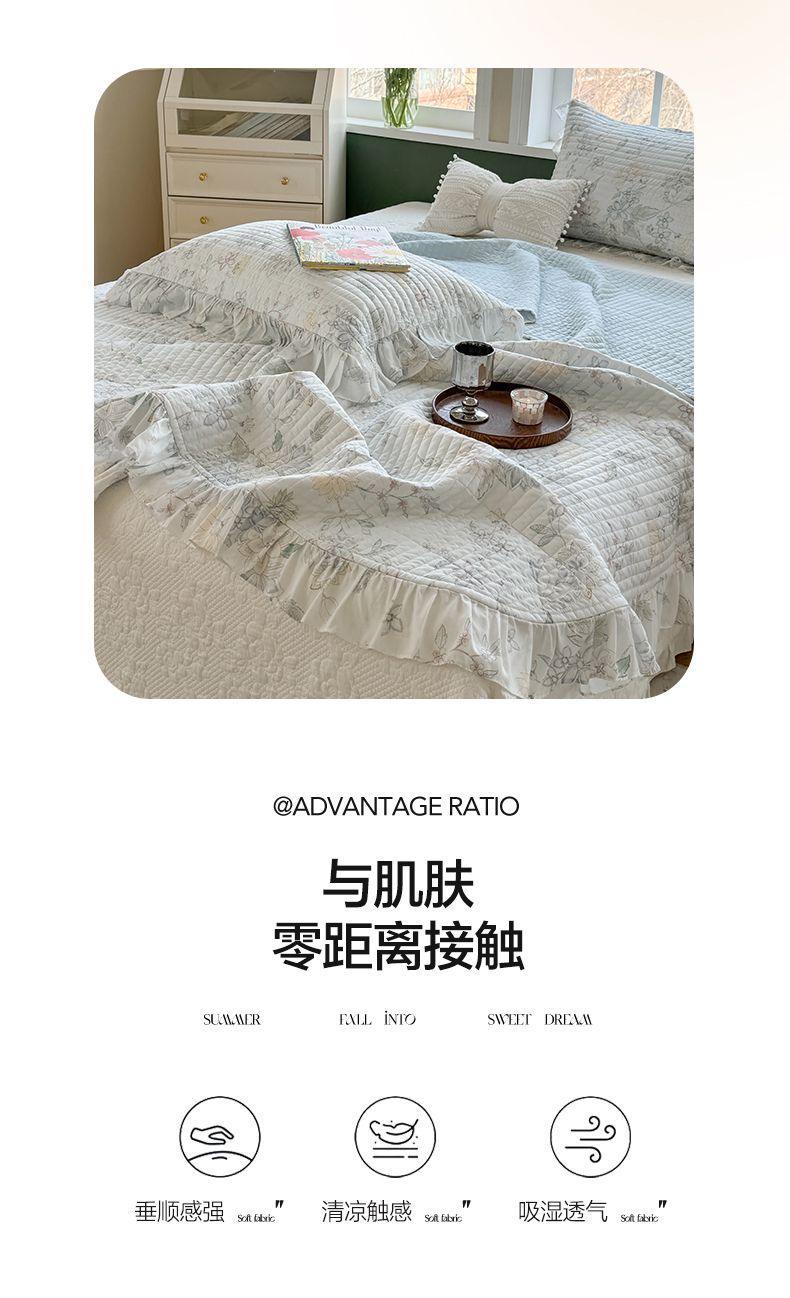 诗黛尔 2024新款莱赛尔印花床盖三件套 海岛蓝