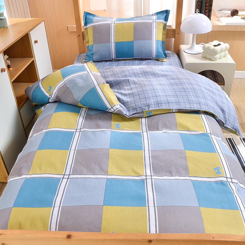 商品名称:2026新款宿舍上下铺12868纯棉三件套 彩色棋盘-黄