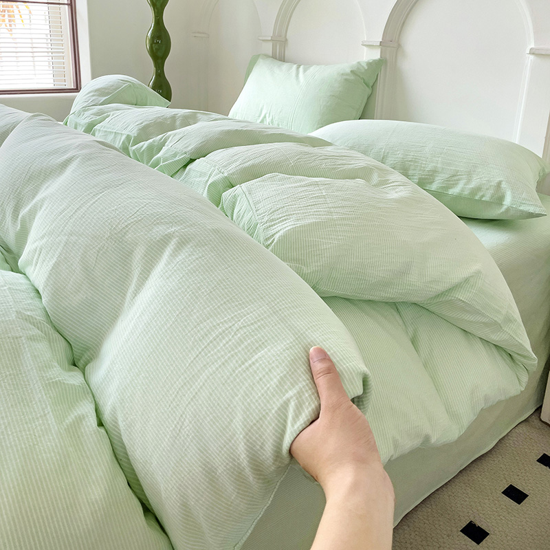 (总)呗旺鹿 2024新款A类40支全棉色织水洗棉四件套全棉四件套纯棉四件套无印风