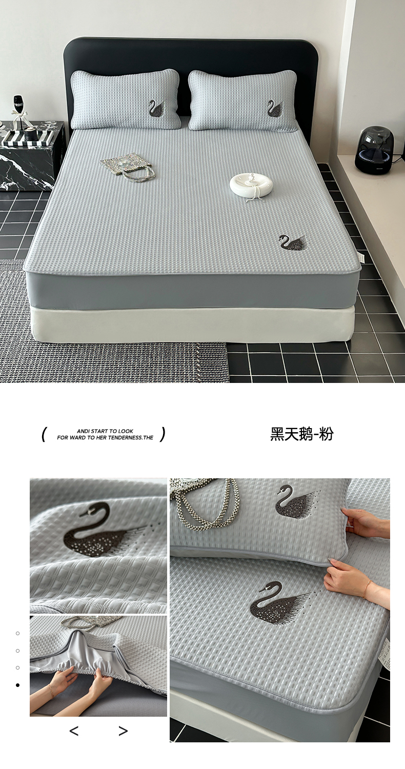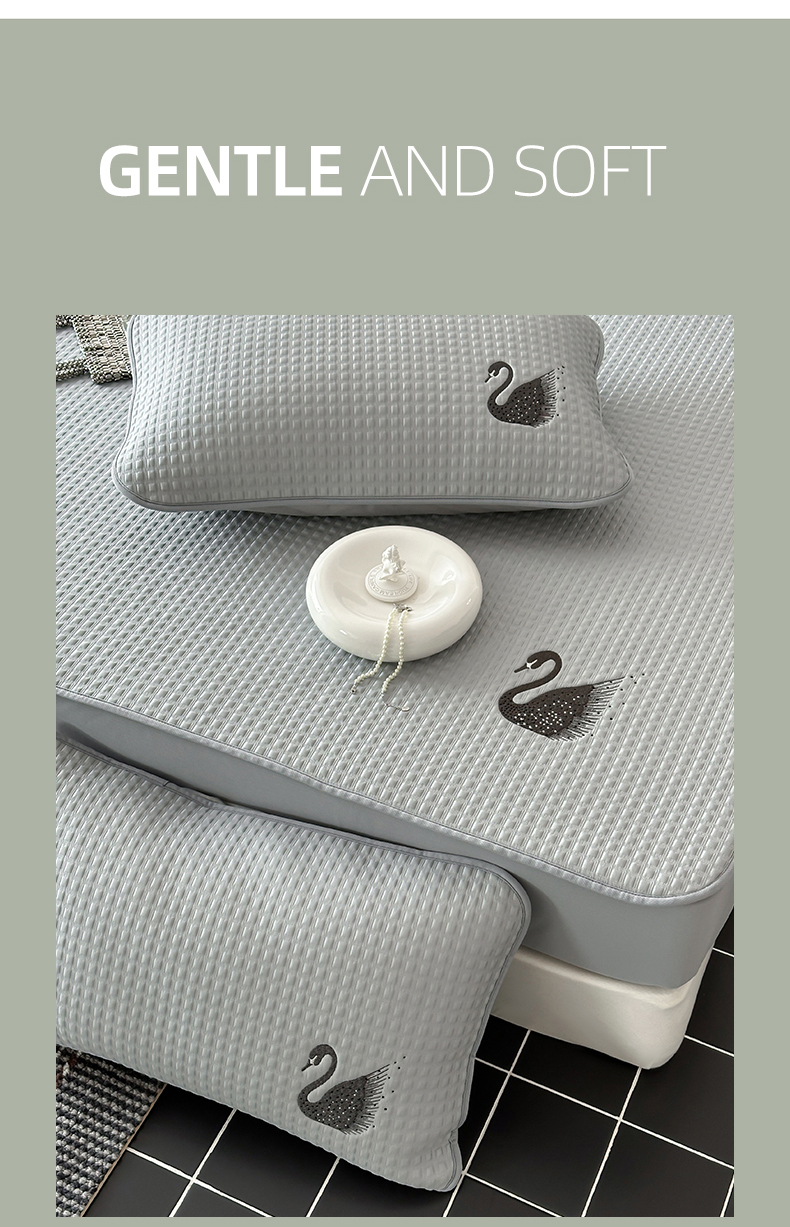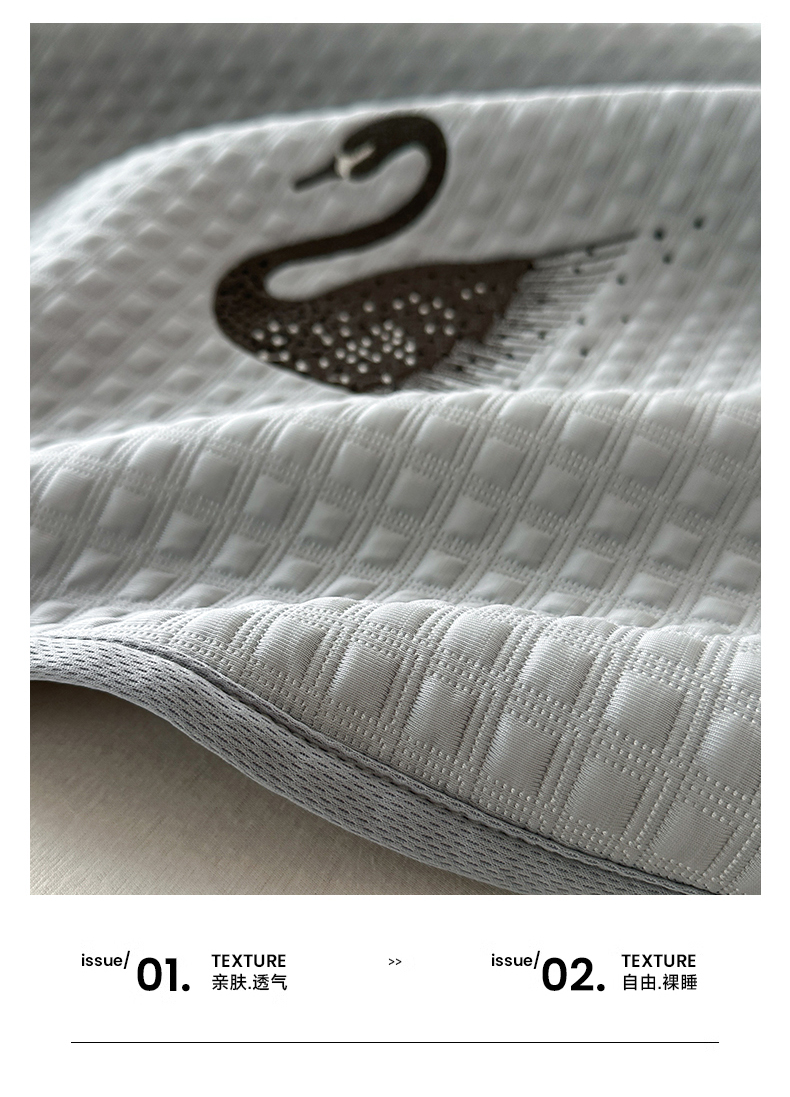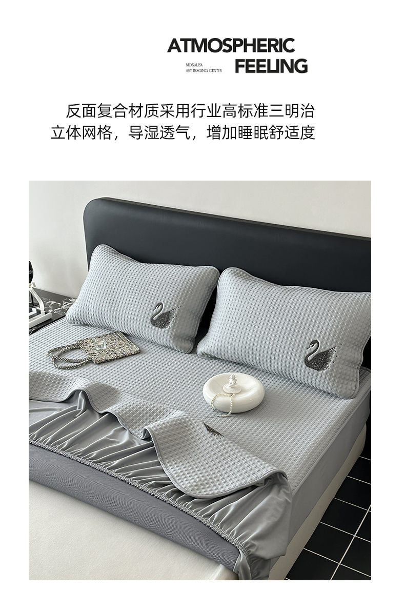 商品名称:JUICY 橘滋家纺 2024新款高定版A类高分子凉感凉席绣花系列三件套 黑天鹅-灰
