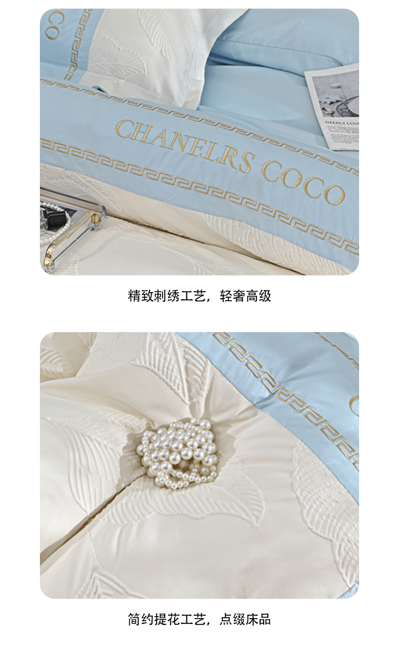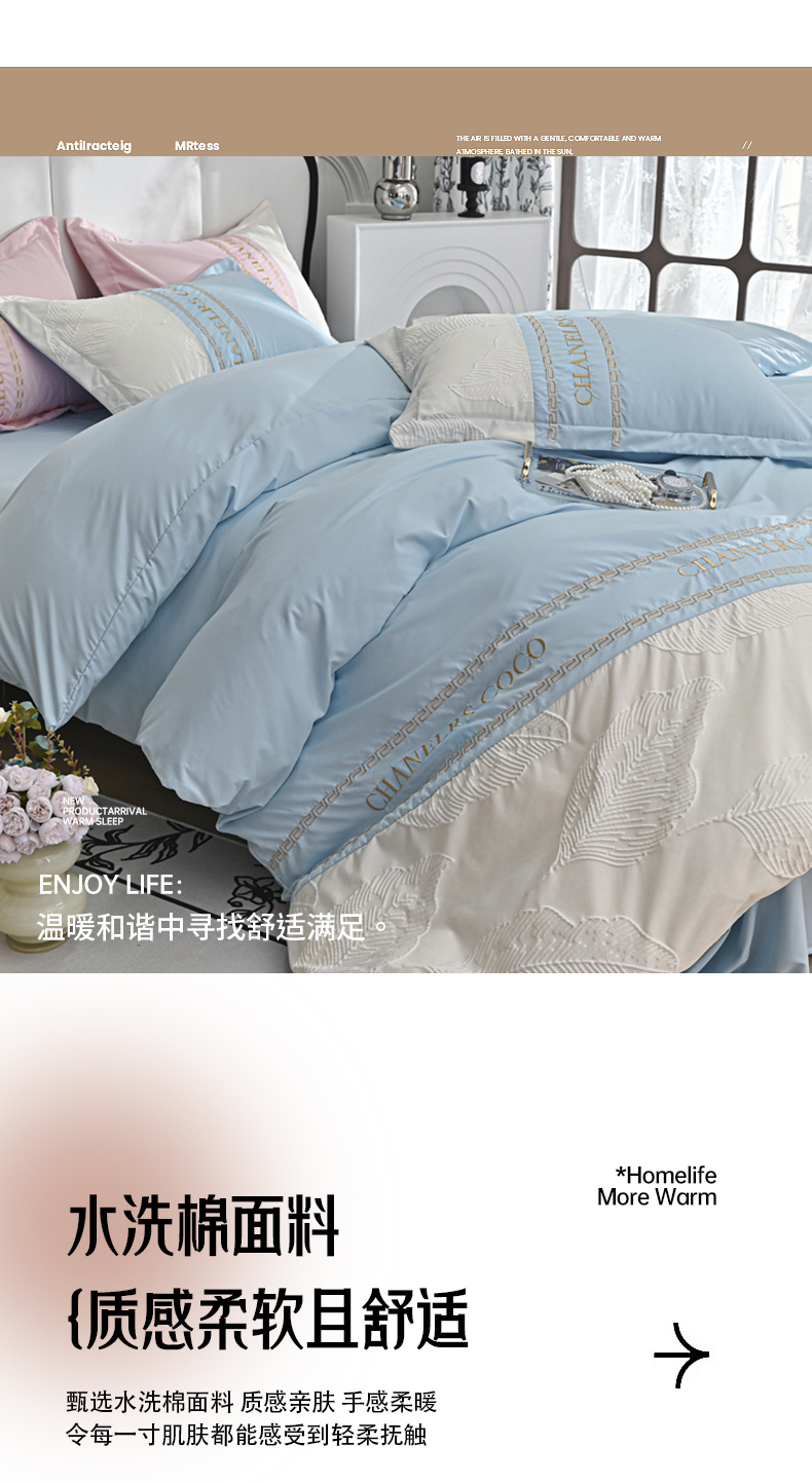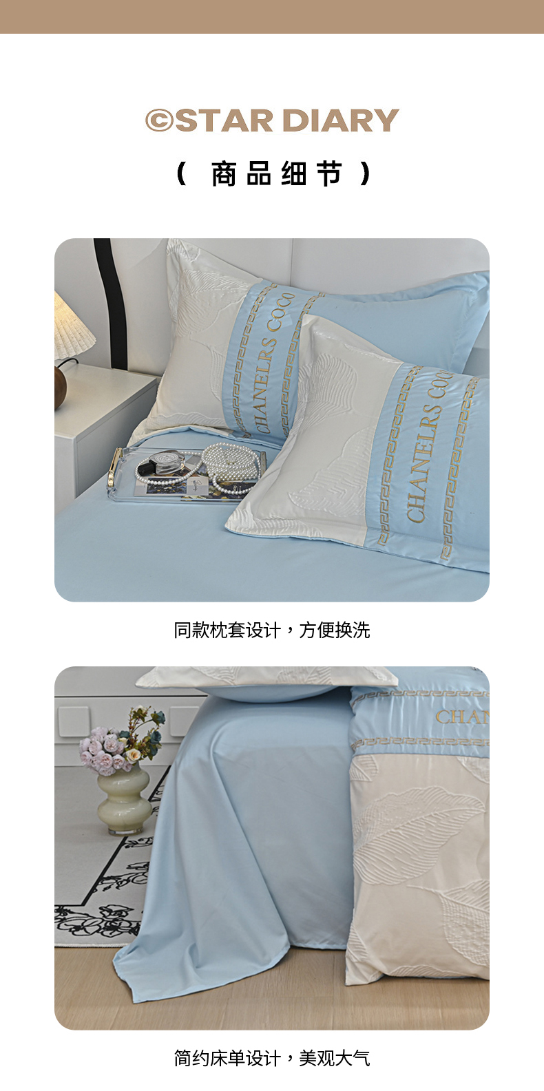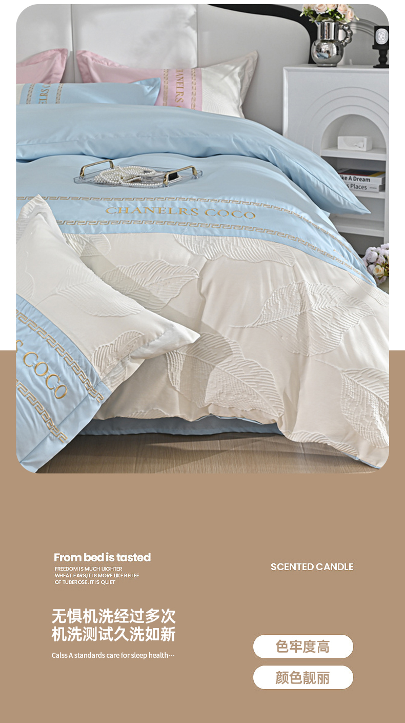 富宁家纺 2025新款直播爆款水洗棉磨毛浮雕刺绣四件套-卡诗(提供买家秀) 蓝叶子
