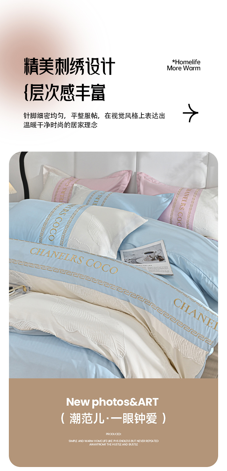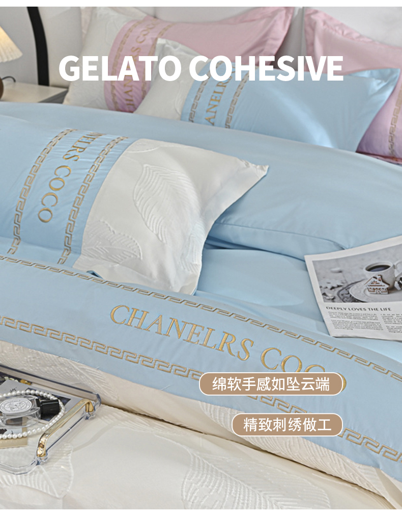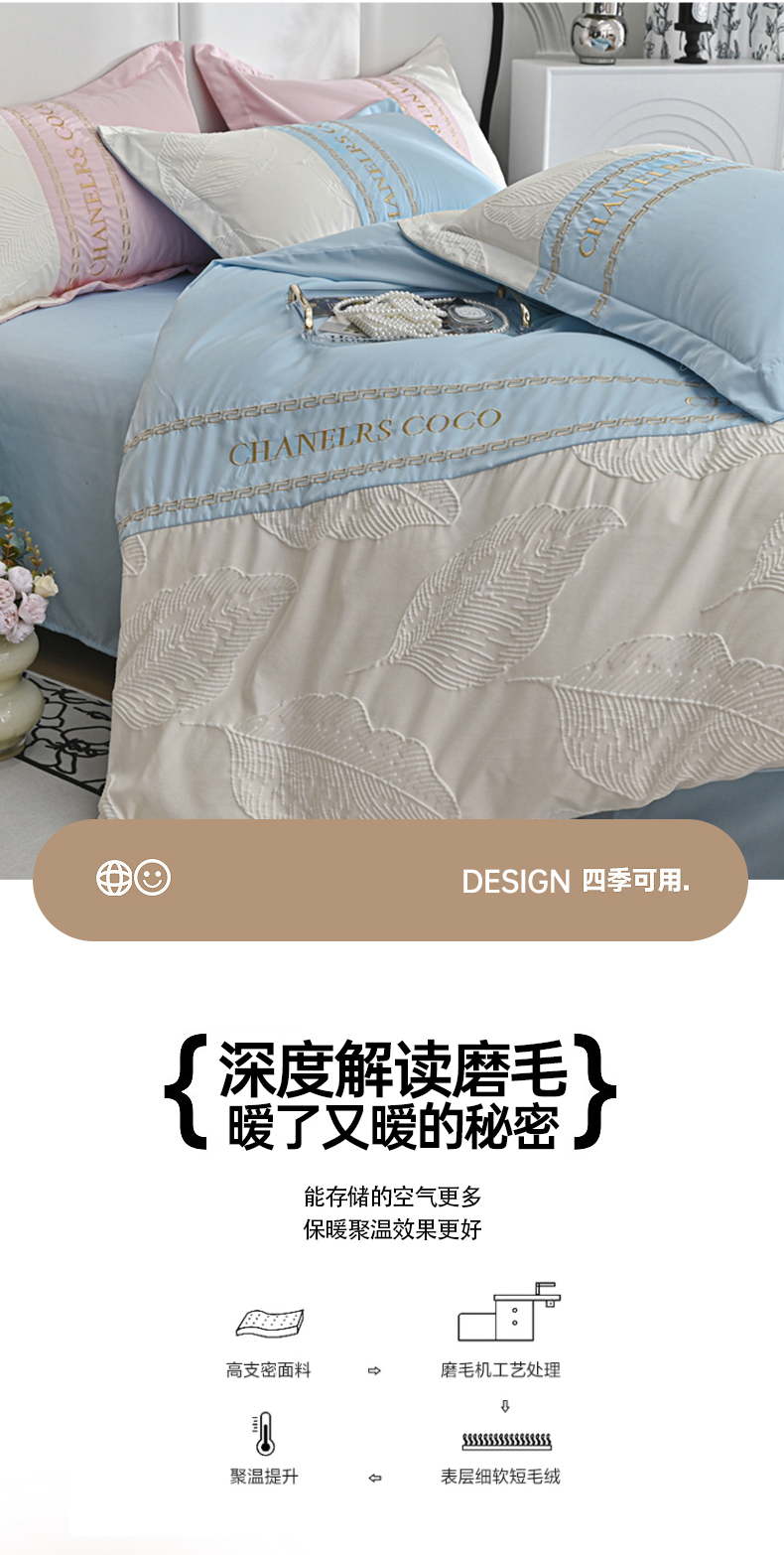 (总)富宁家纺 2025新款直播爆款水洗棉磨毛立体浮雕刺绣四件套-卡诗,橙叶子,灰叶子,粉叶子,绿叶子,蓝叶子