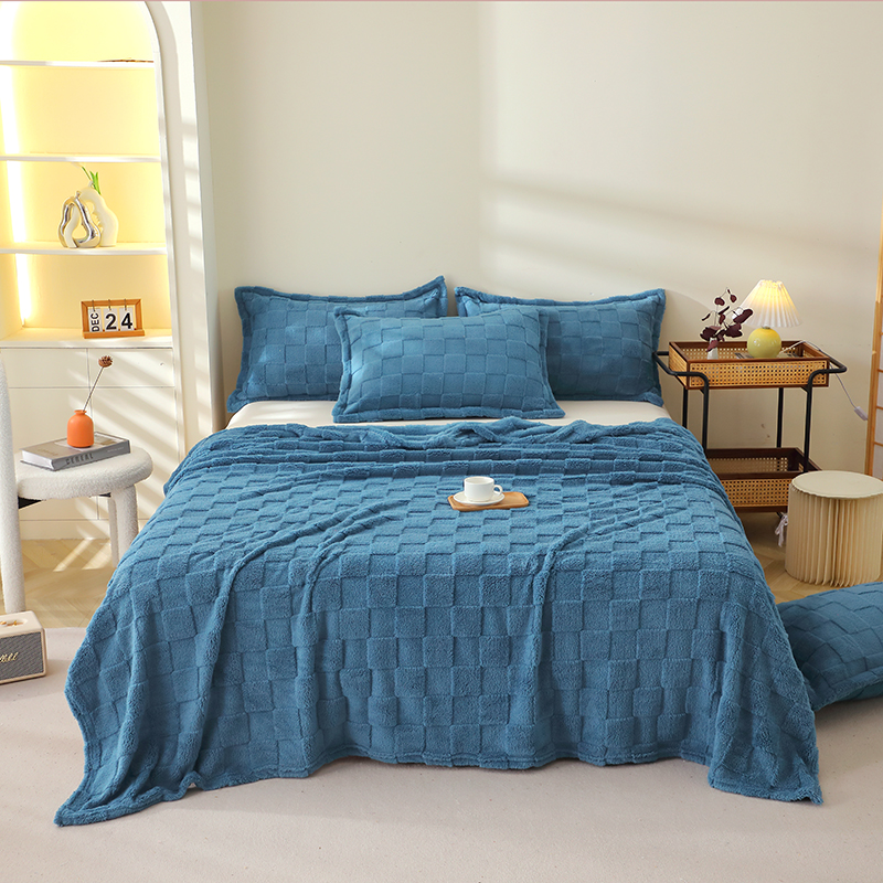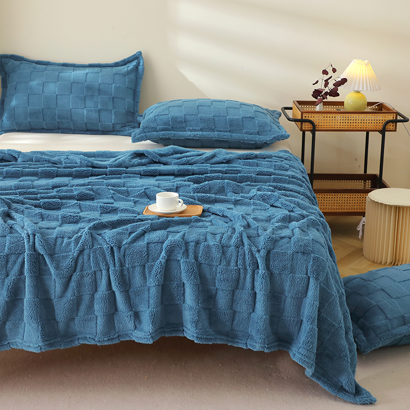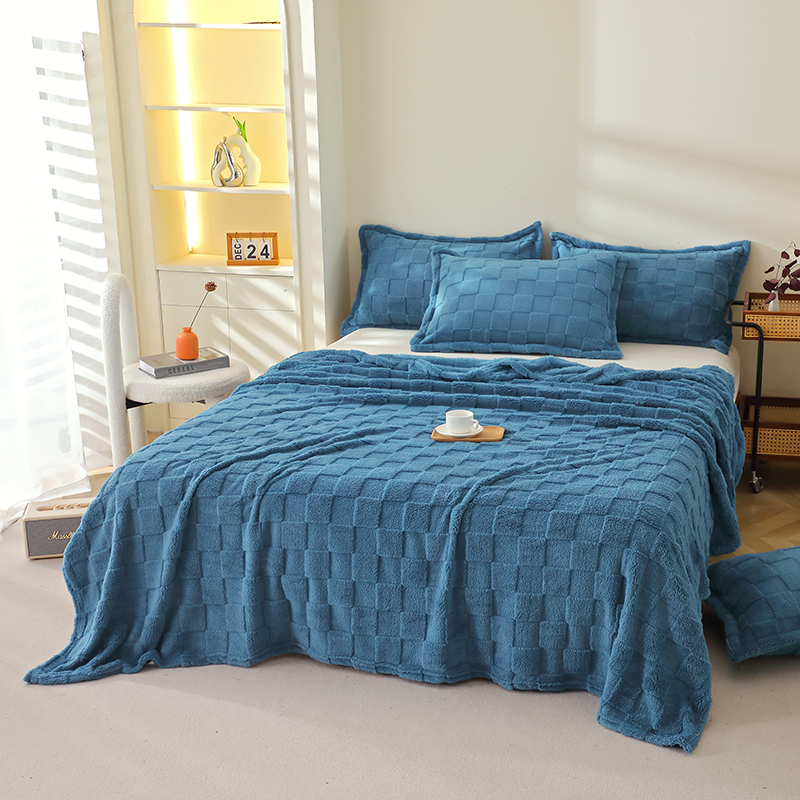 芸锦豪 2024新款意大利面包格毛毯-卷边款 孔雀蓝