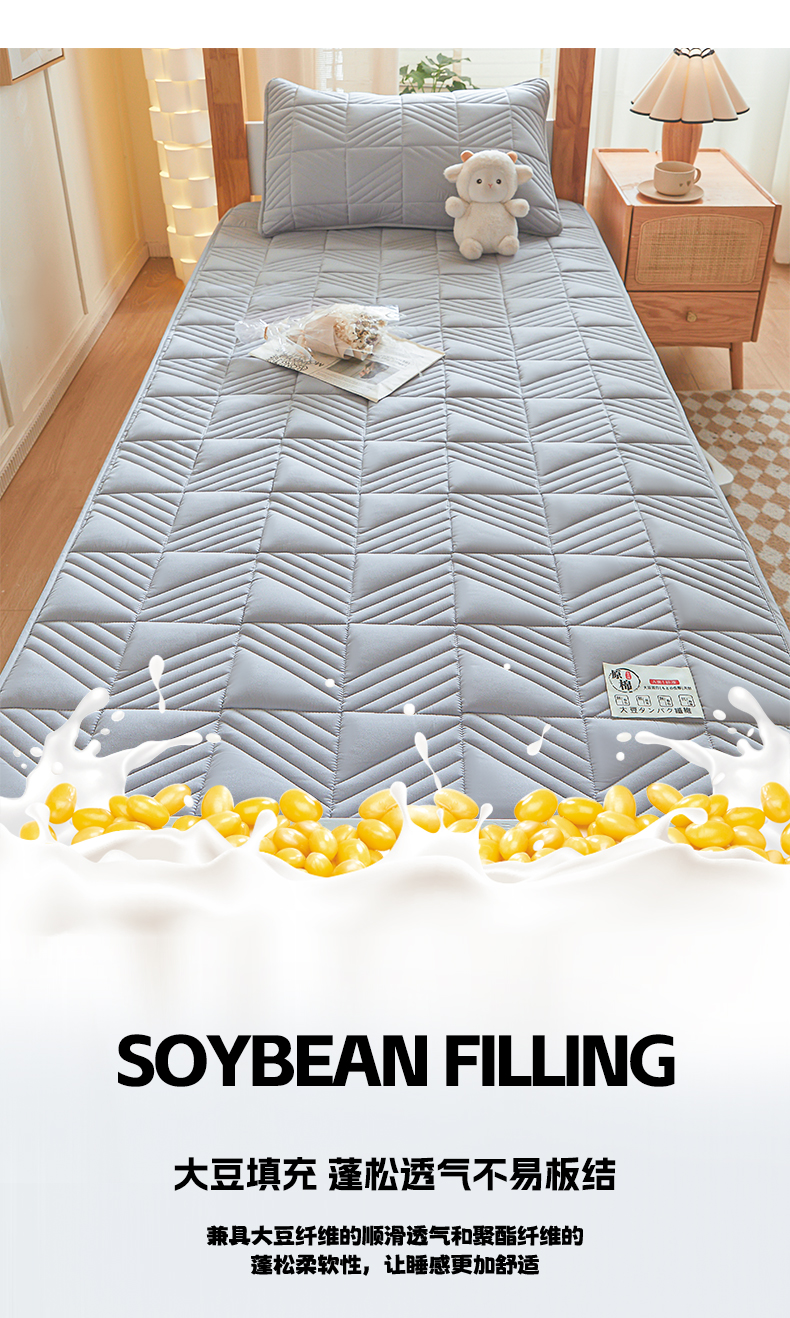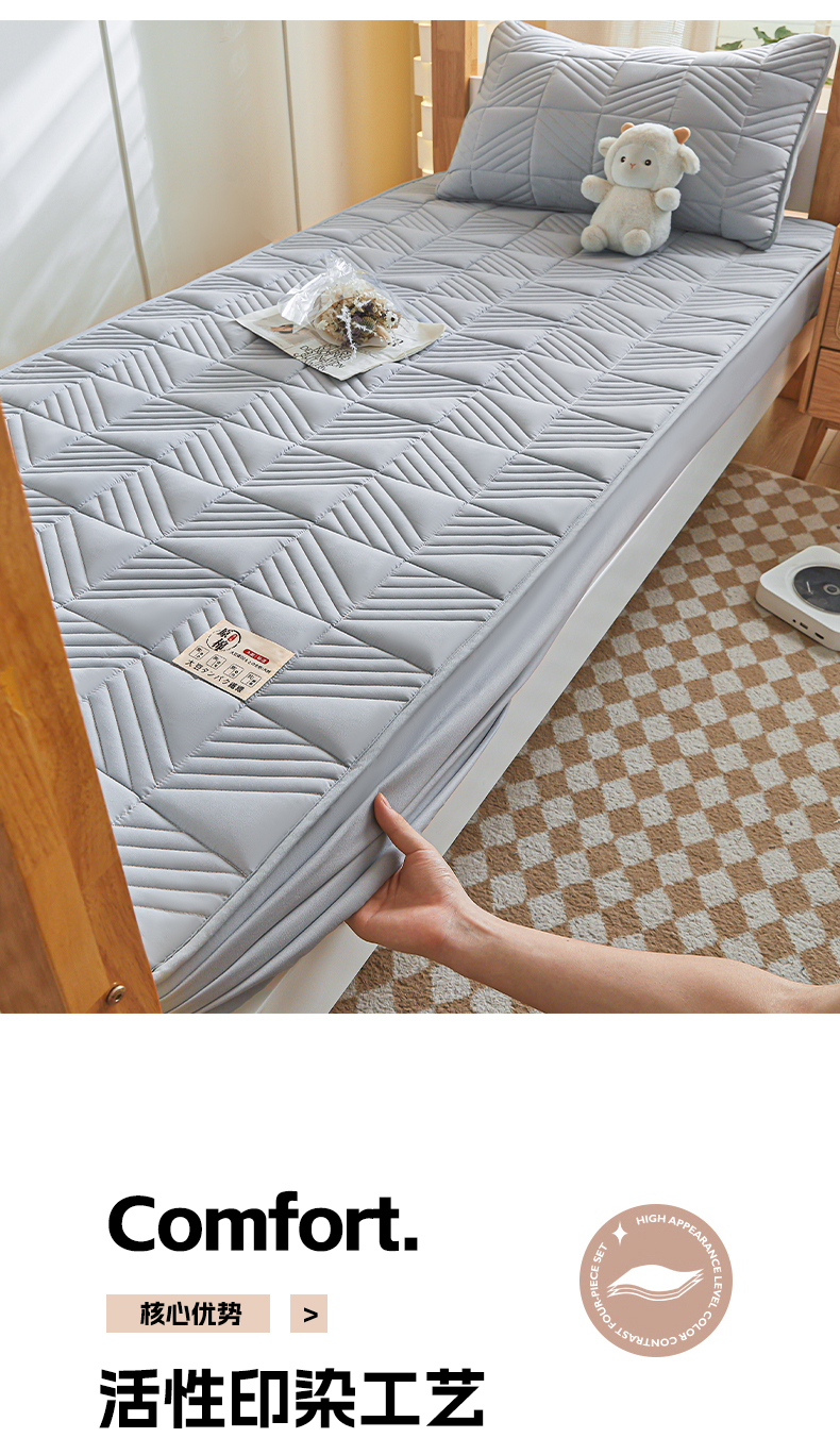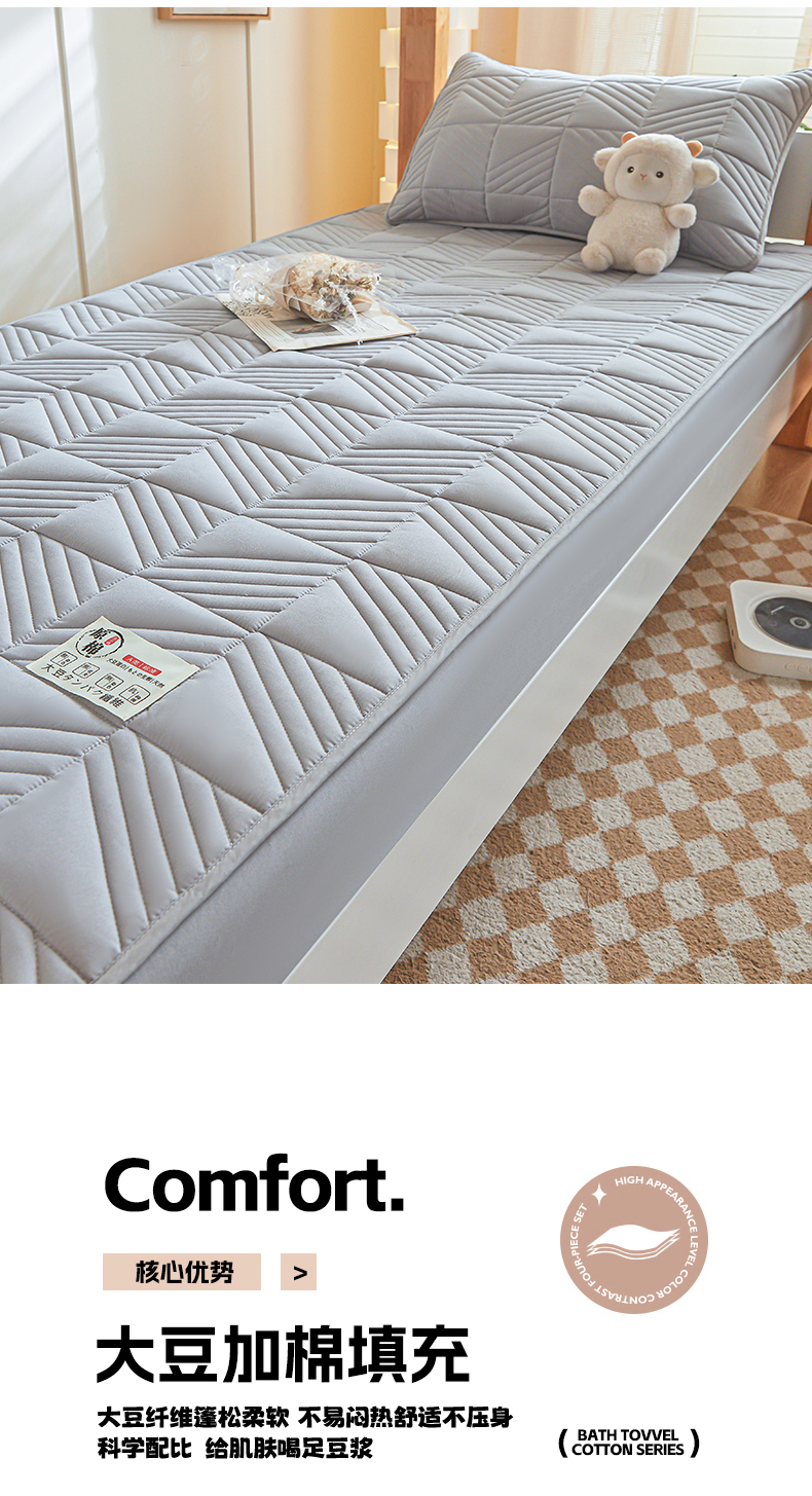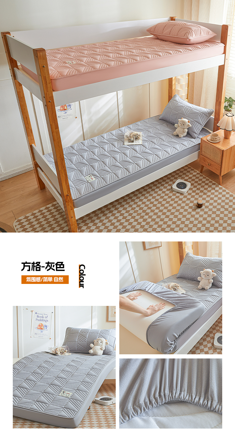 • 91家纺网 家纺一手货源 找家纺 居眠 2024新款学生宿舍夹棉大豆床笠 方格-灰色