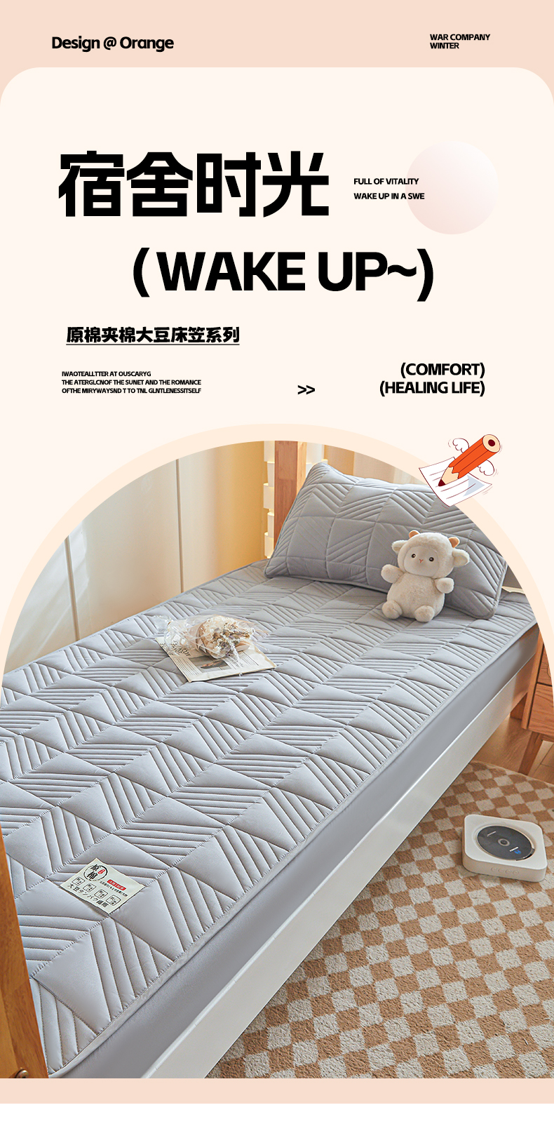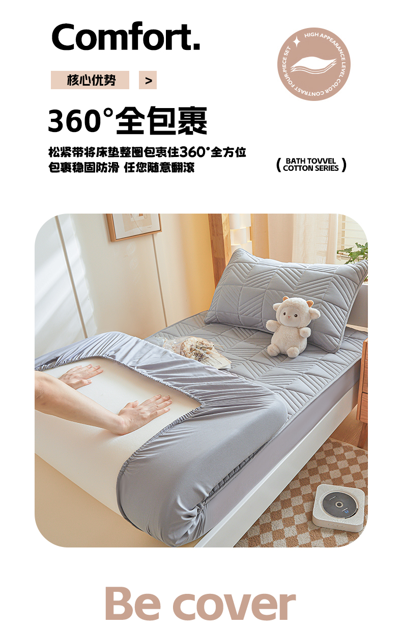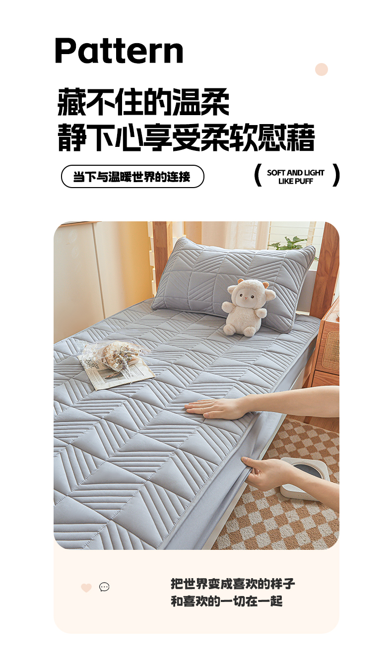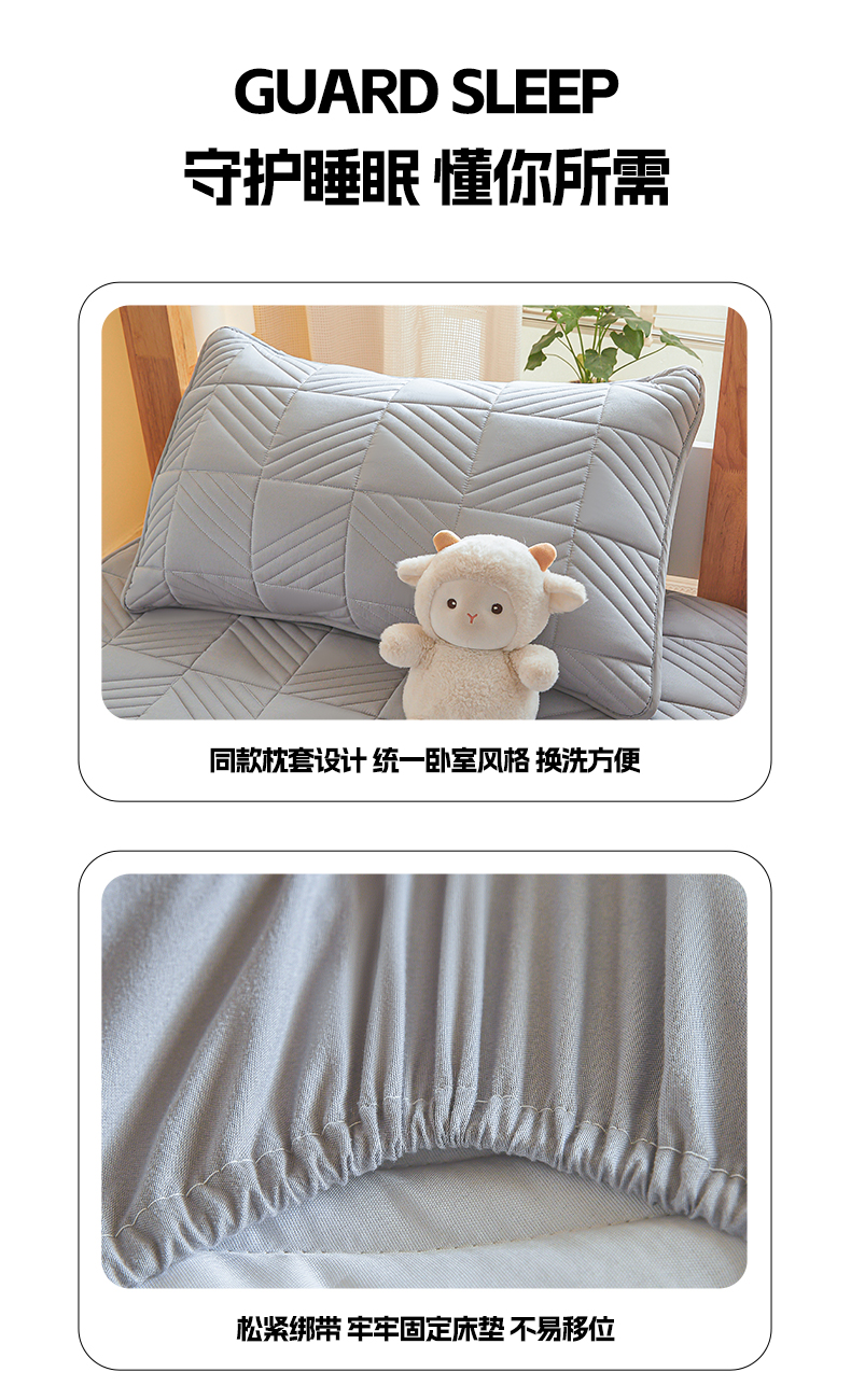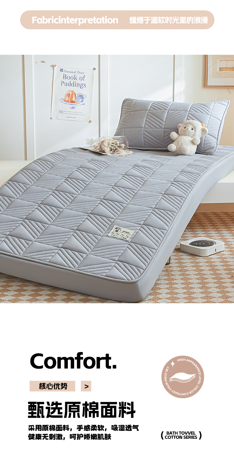 • 91家纺网 家纺一手货源 找家纺 居眠 2024新款学生宿舍夹棉大豆床笠 方格-灰色