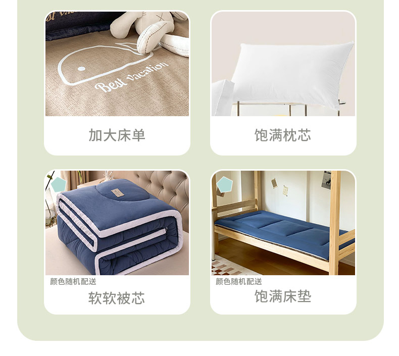 0.9m床垫上下铺六件套3斤被芯 | ¥94.00 |