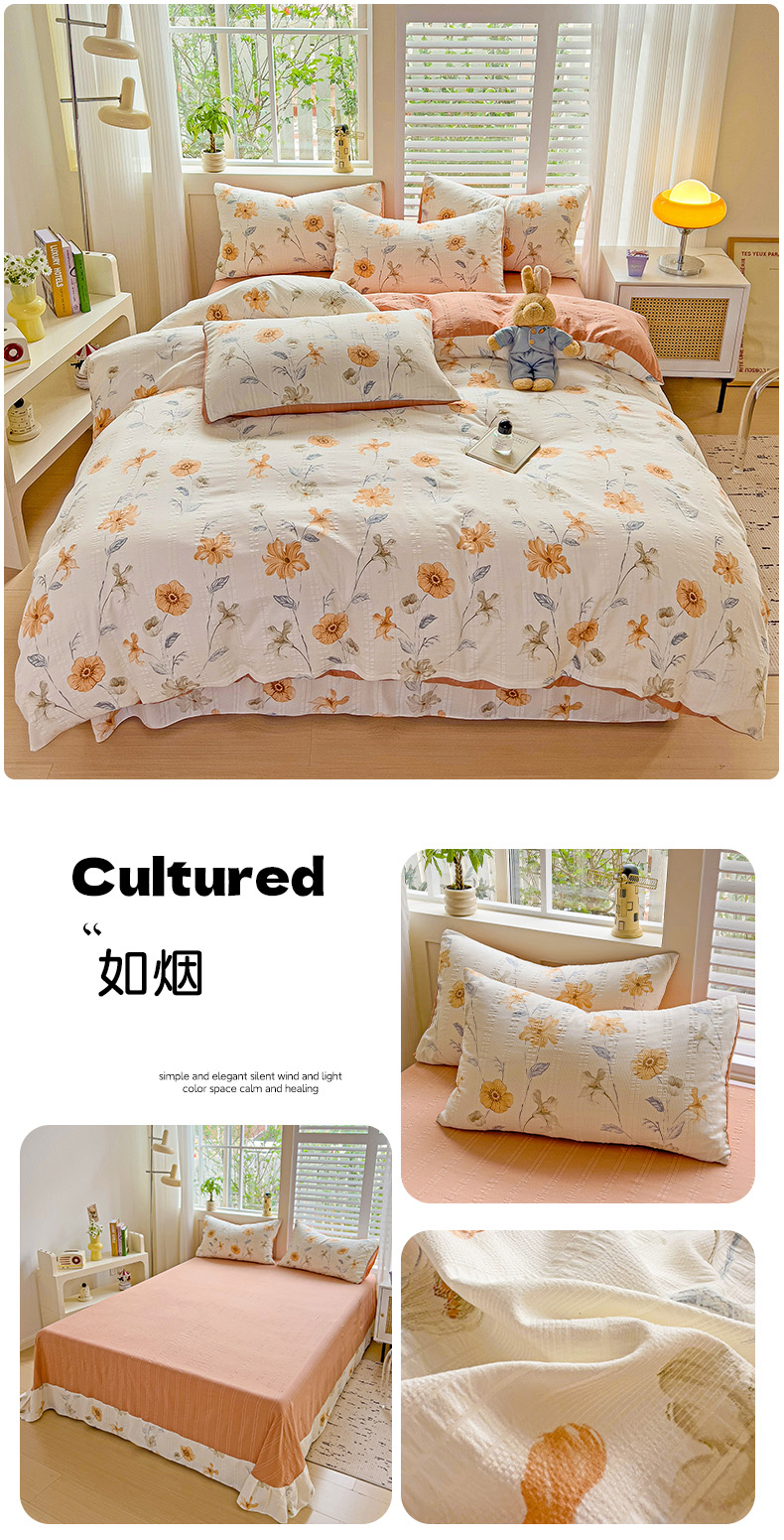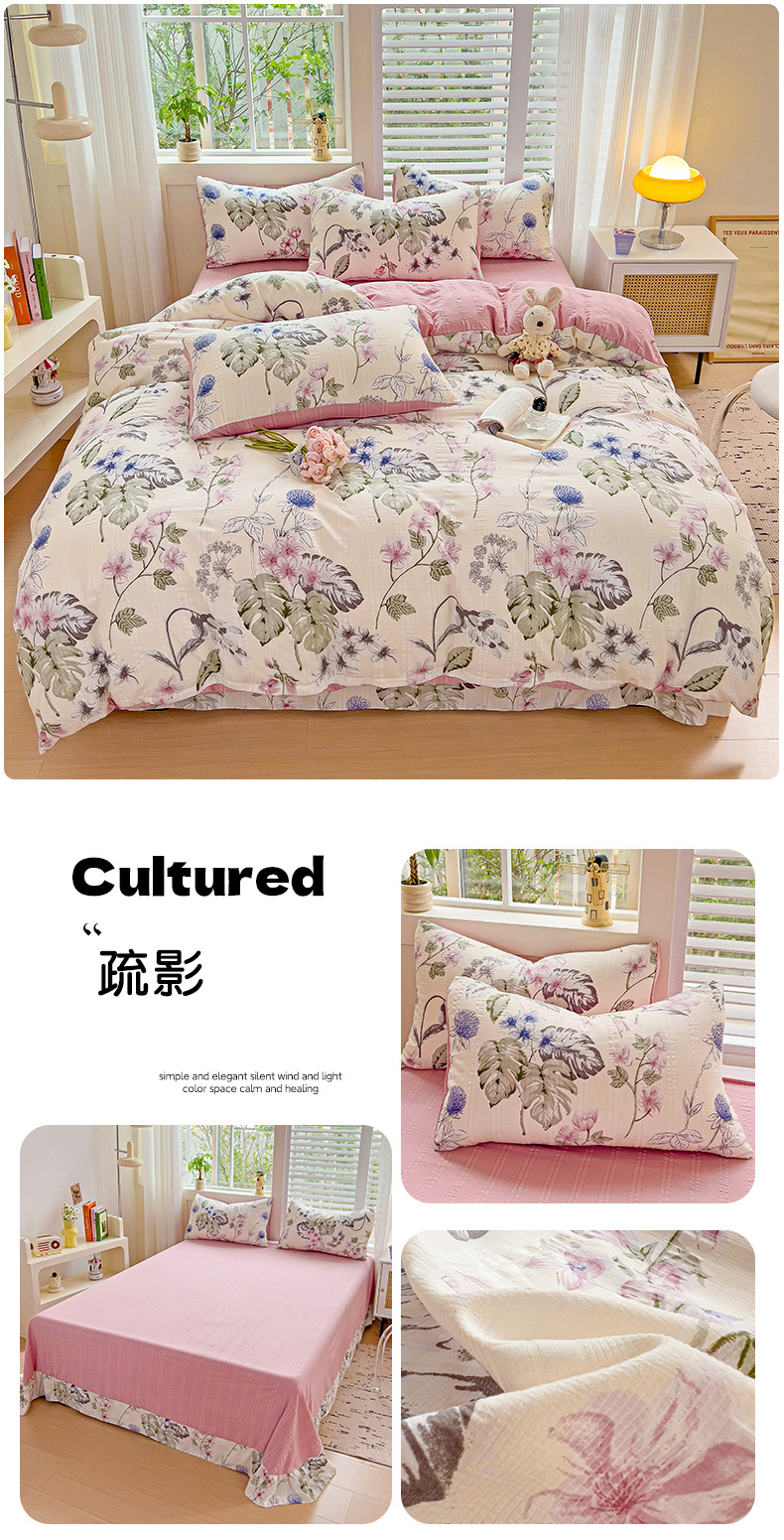 (总)优选良品 2025(优选)新款皱皱双层纱全棉花边夏被空调被夏凉被三件套,春天里,春晓,粉妆,蝴蝶结,花涧,微凉薄荷