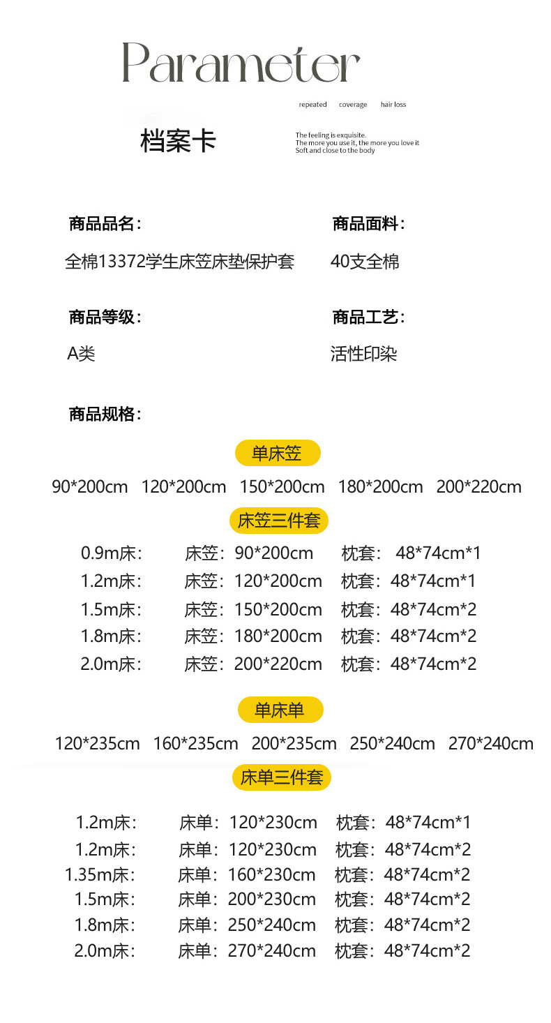宽160cm长230cm床单三件套 | ¥45.00 |