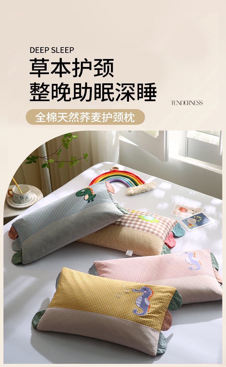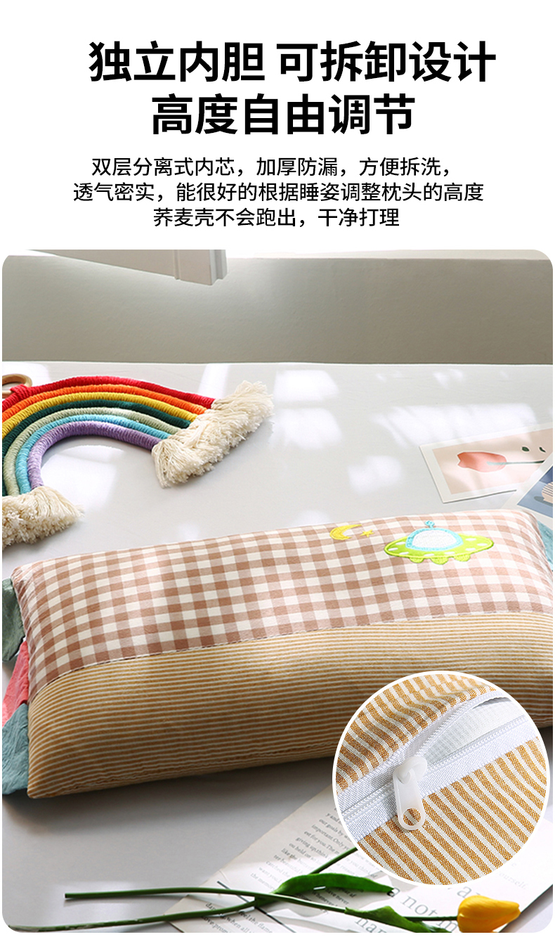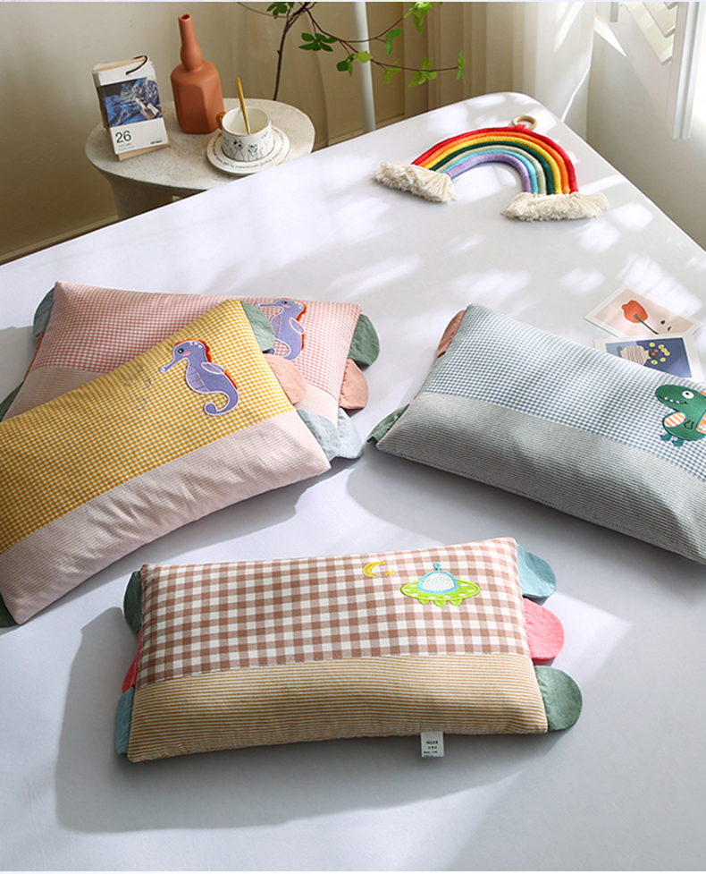 (总)蔻眠 全棉水洗棉贴布绣儿童荞麦枕头幼儿园学生枕芯30x50cm