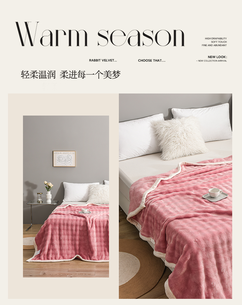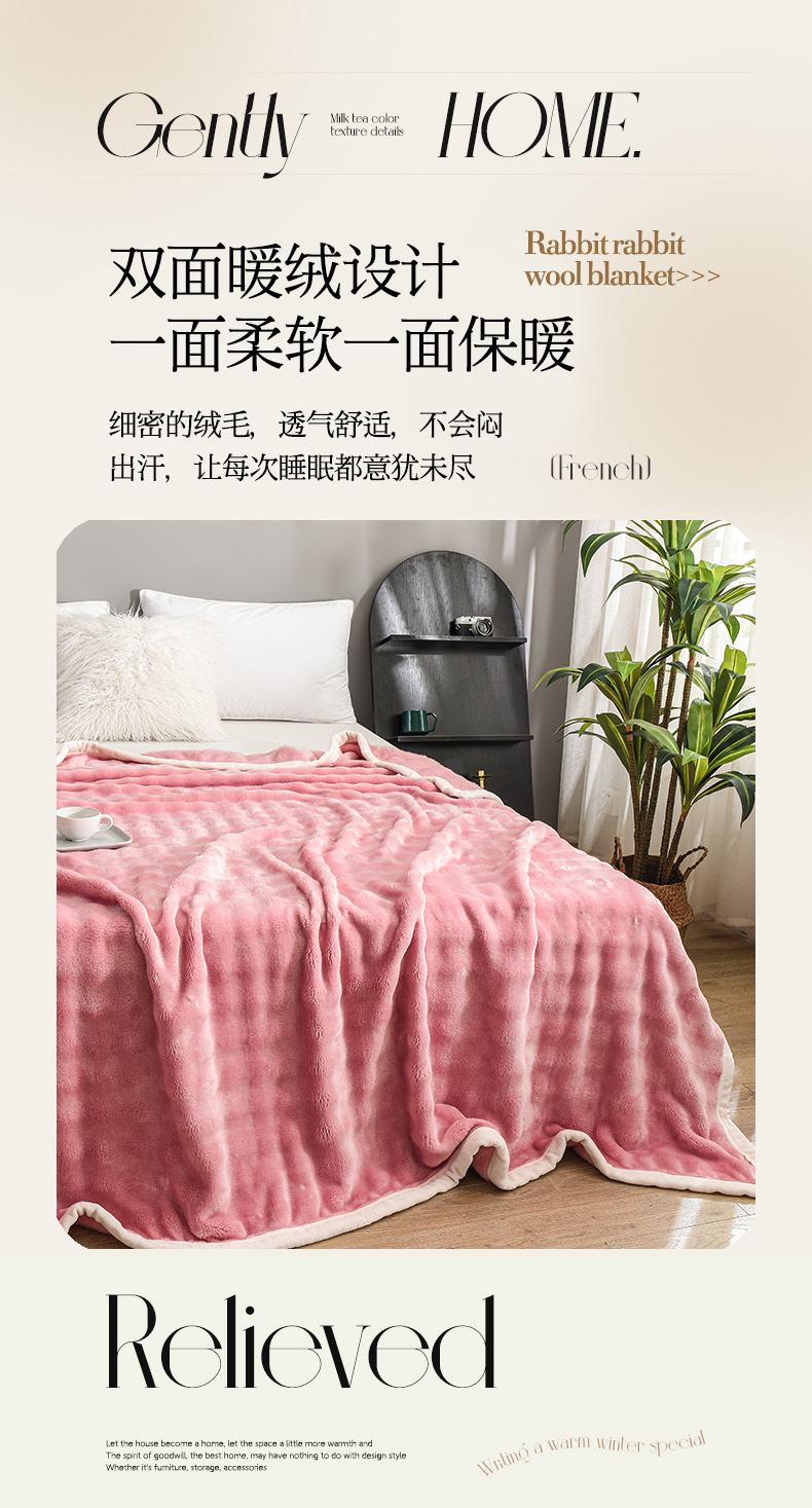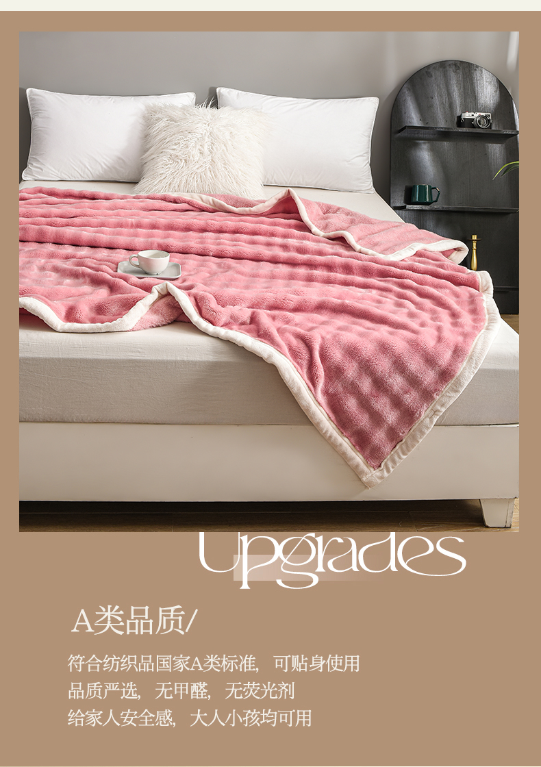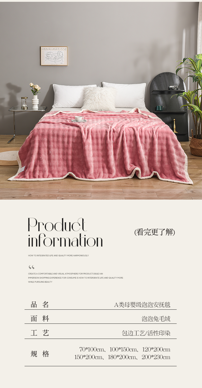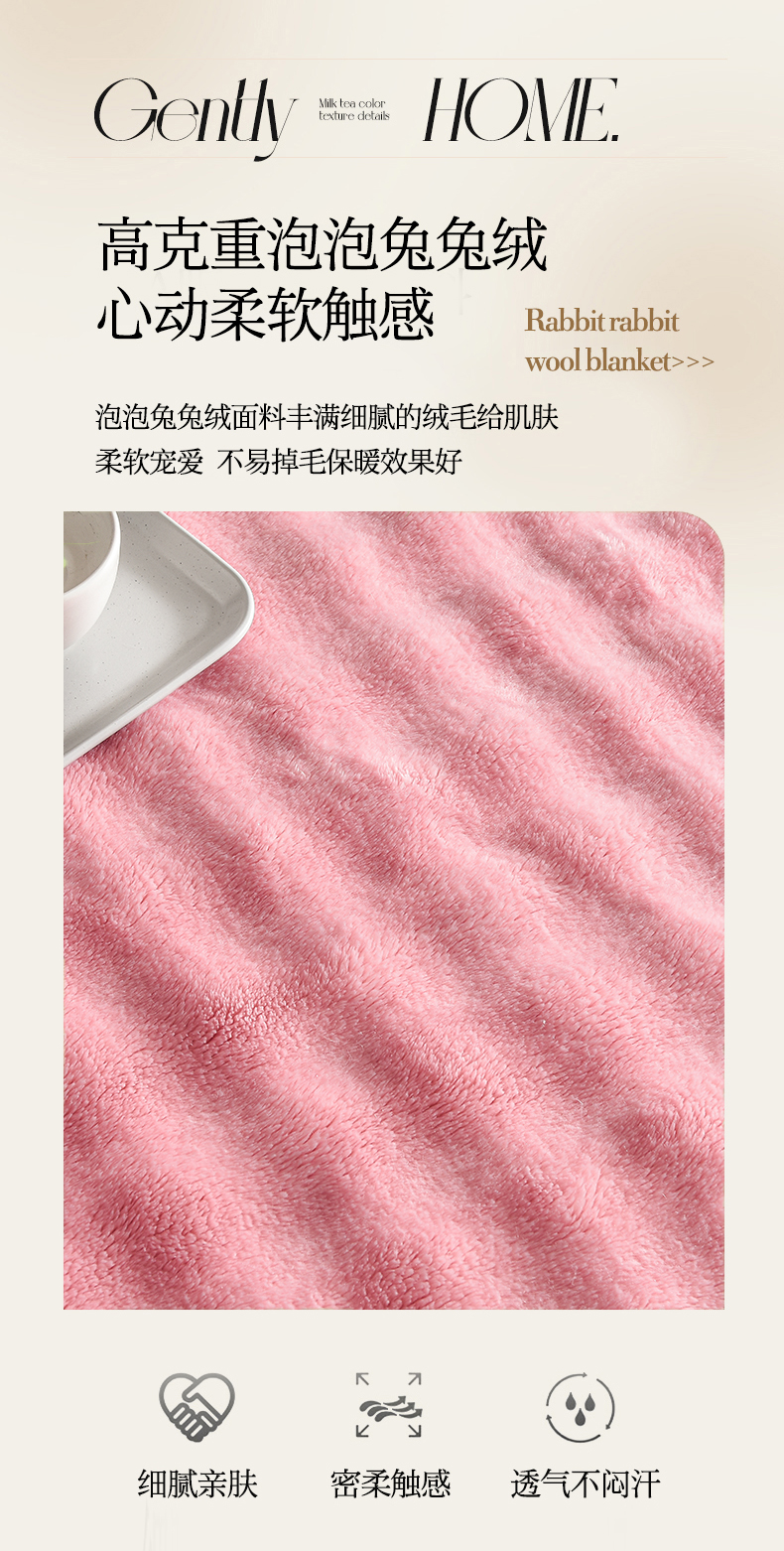 (总)爱她美家纺 2024新款兔毛泡泡毯多功能毯子,草绿,粉色,奶白,浅灰,天蓝,驼色,紫色