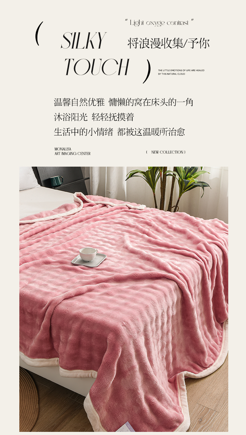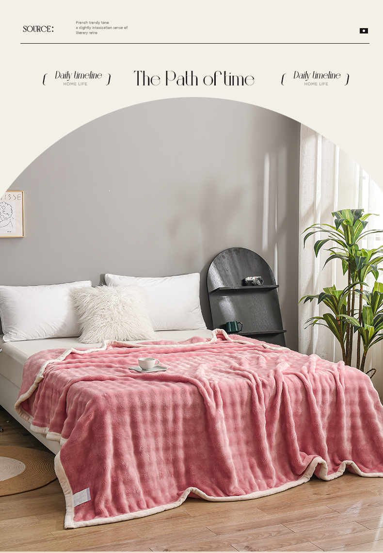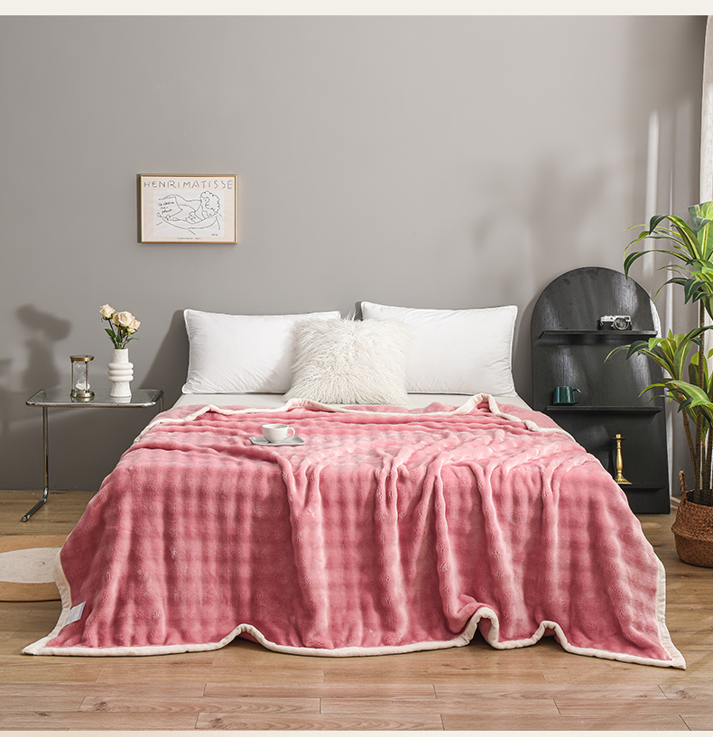 爱她美家纺 2024新款兔毛泡泡毯多功能毯子 粉色