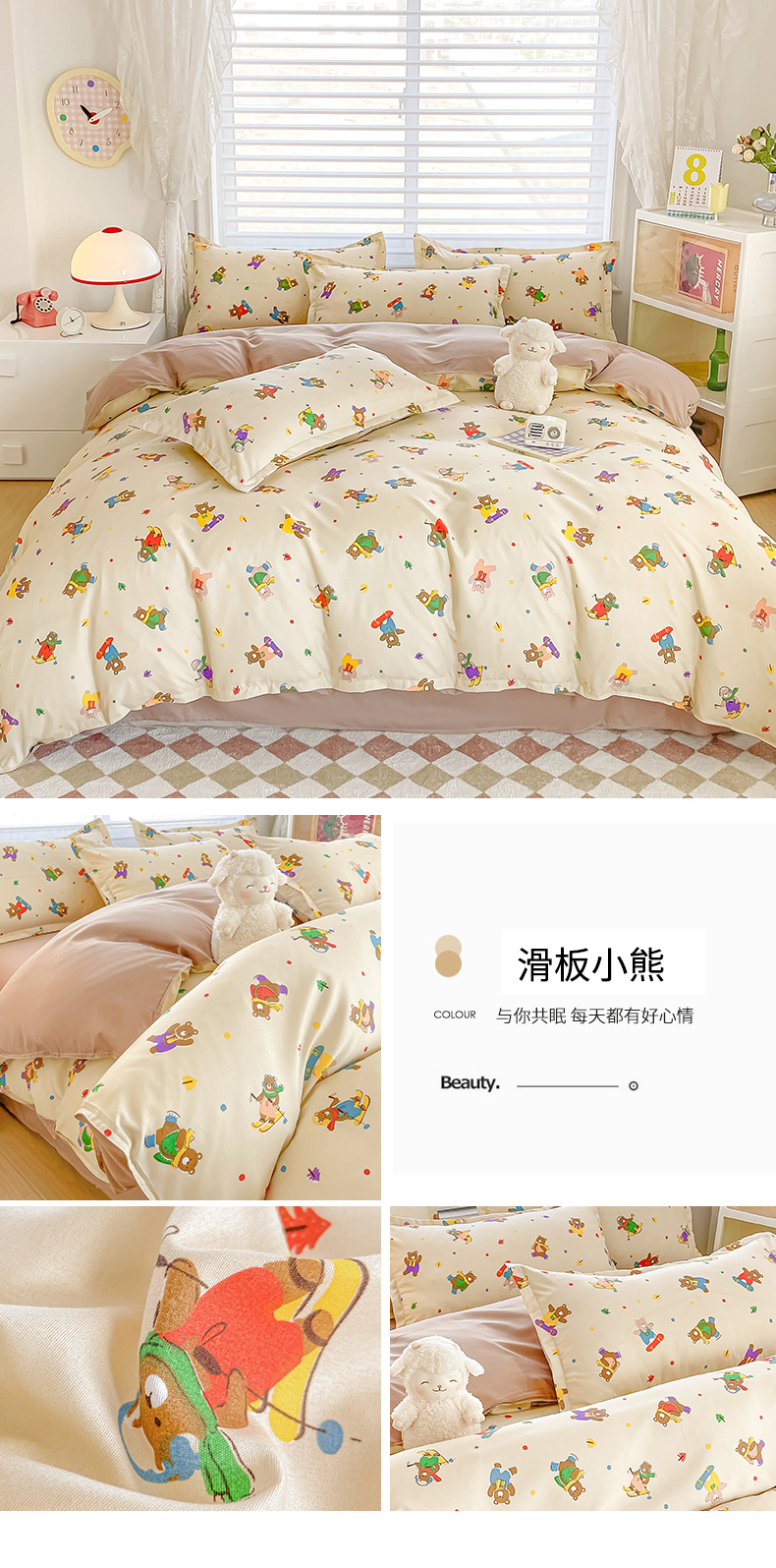 (总)楠沐家纺 2025新款芦荟棉印花学生宿舍上下铺四件套三件套,冰淇淋格,春田花卉,蝶舞仙子,哆咪熊,果绿浅驼,果绿耀夜黑,花丛兔,滑板小熊,猫咪小姐,秘境花园,奶粉色泡泡绿,南得遇见,派对熊,山茶花,水墨花,田园小兔,心动兔,星星兔,幸运心,炫彩蓝格,血牙深灰,紫色浪漫,紫悦