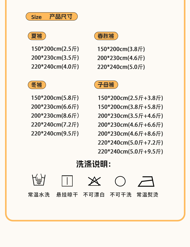 150*200cm 子母被(3.8斤+5.8斤) | ¥275.00 |