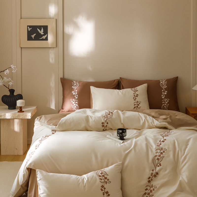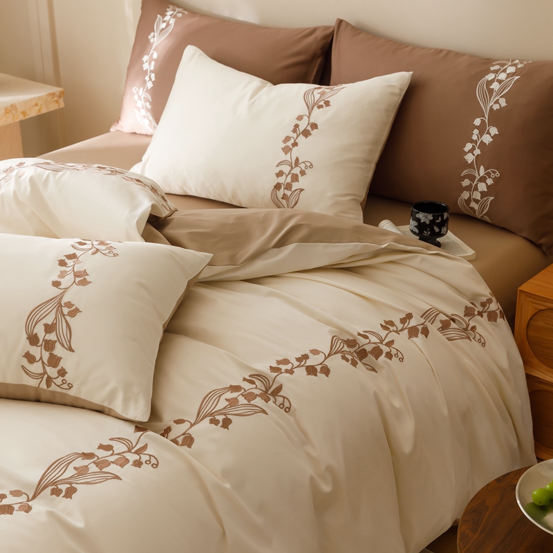 初拾 2024新款100s澳棉刺绣-铃兰花语系列四件套 铃兰花语-奶昔白