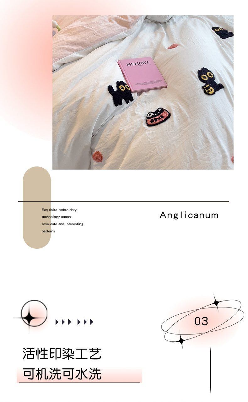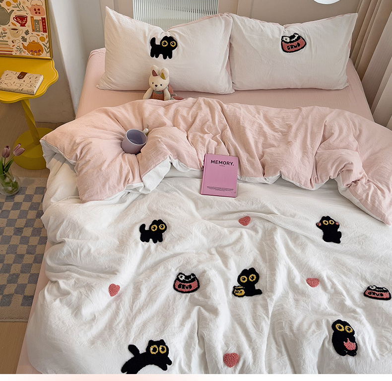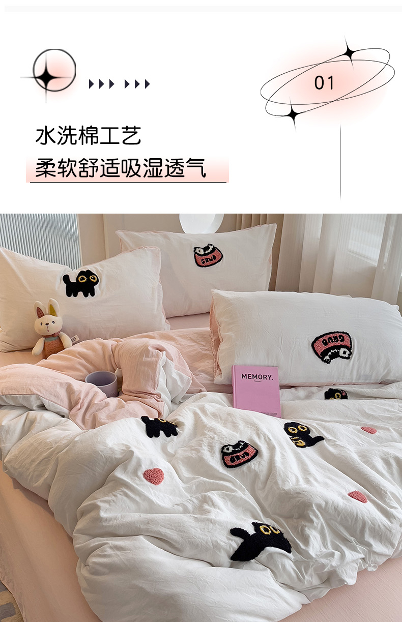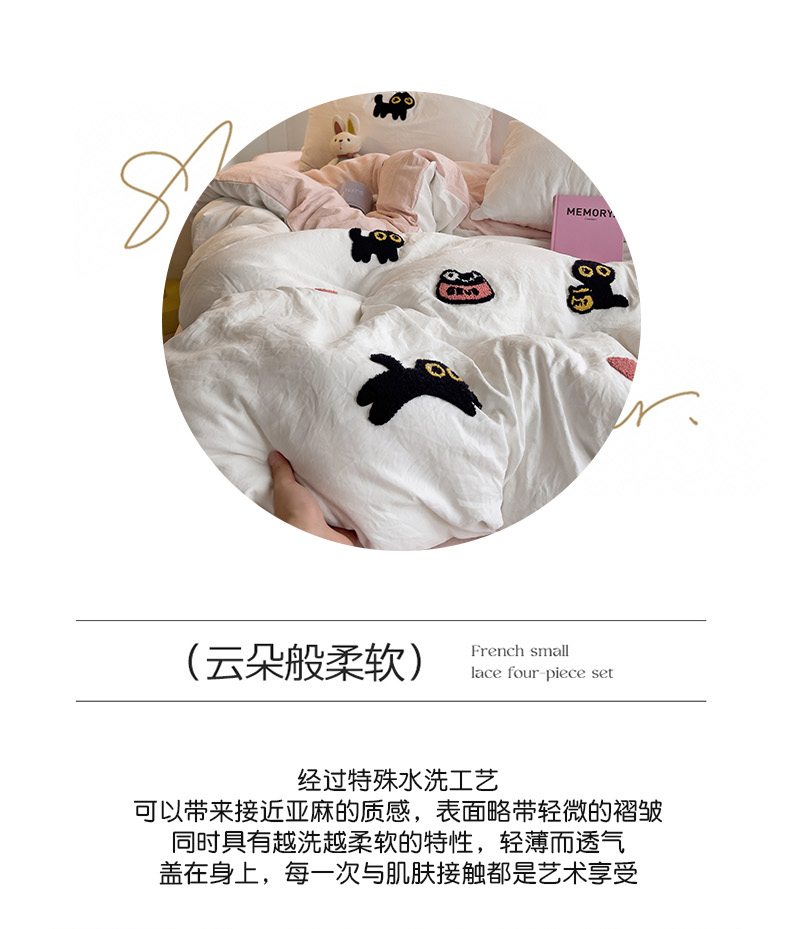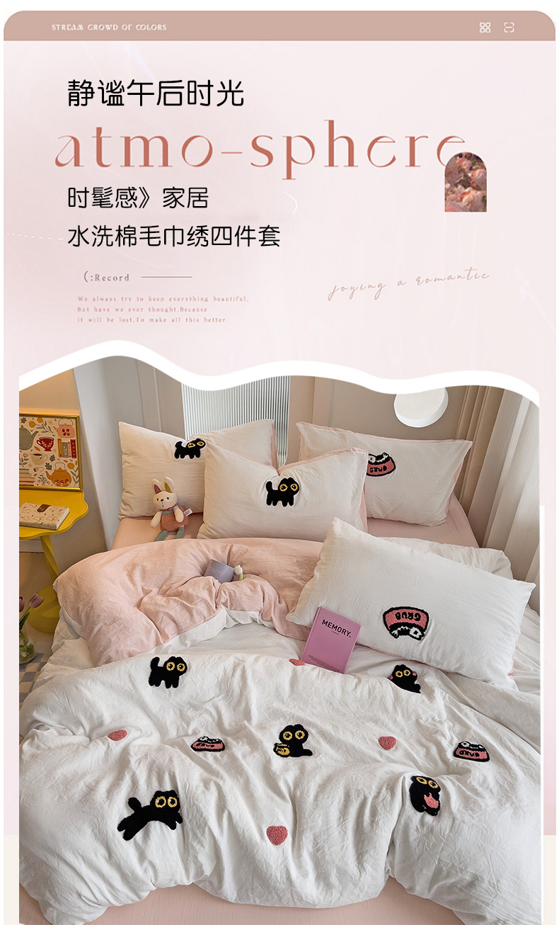 当前位置: 91家纺网 > 商品网购 > 床品套件 > 四件套 > 水洗棉四件套 > 韩巢家纺 2024新款四季通用超柔水洗棉毛巾绣四件套-幸运猫系列(提供卖家秀) 幸运猫白浅粉