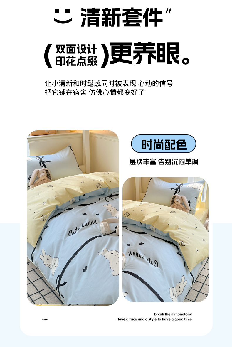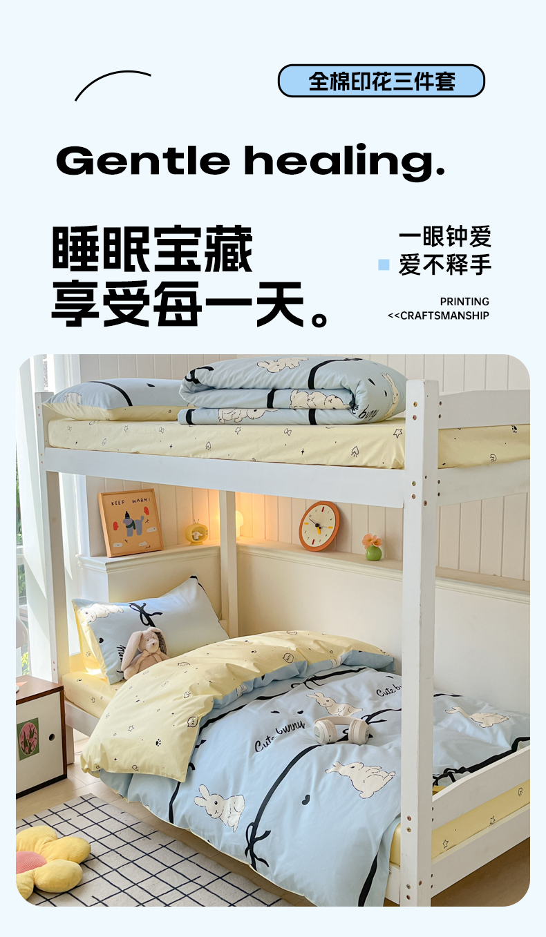 (总)吉象 2025新款全棉印花学生三件套学生宿舍三件套,霸王龙,马里奥,蜜桃兔,太空旅行,悉尼豆沙,悉尼绿