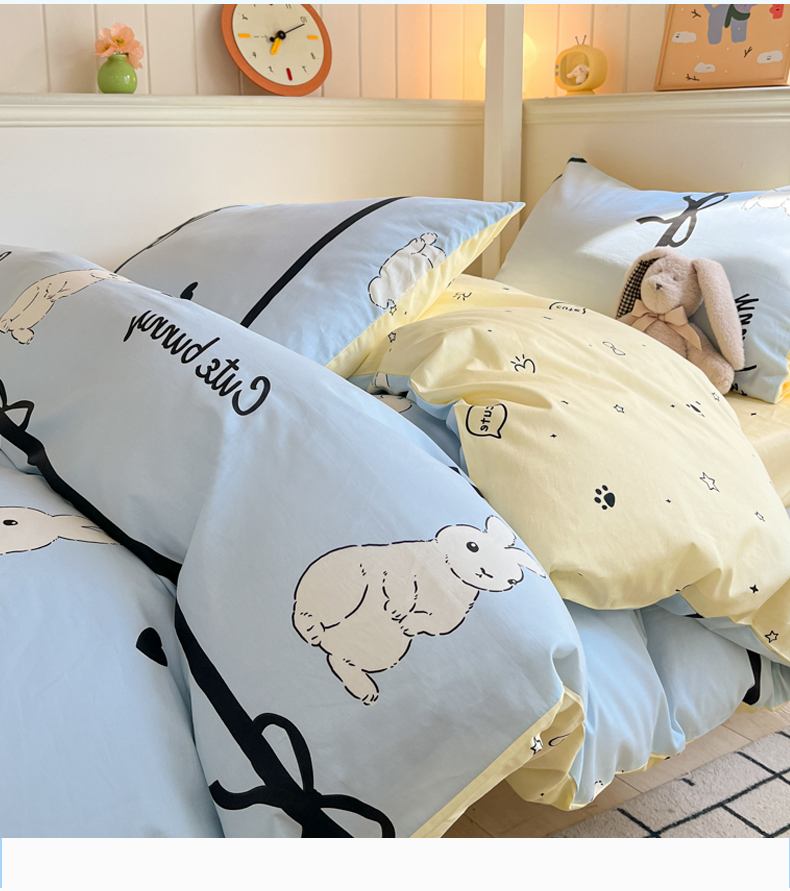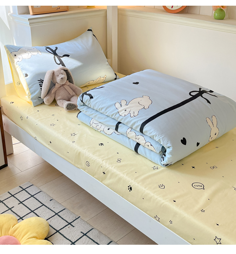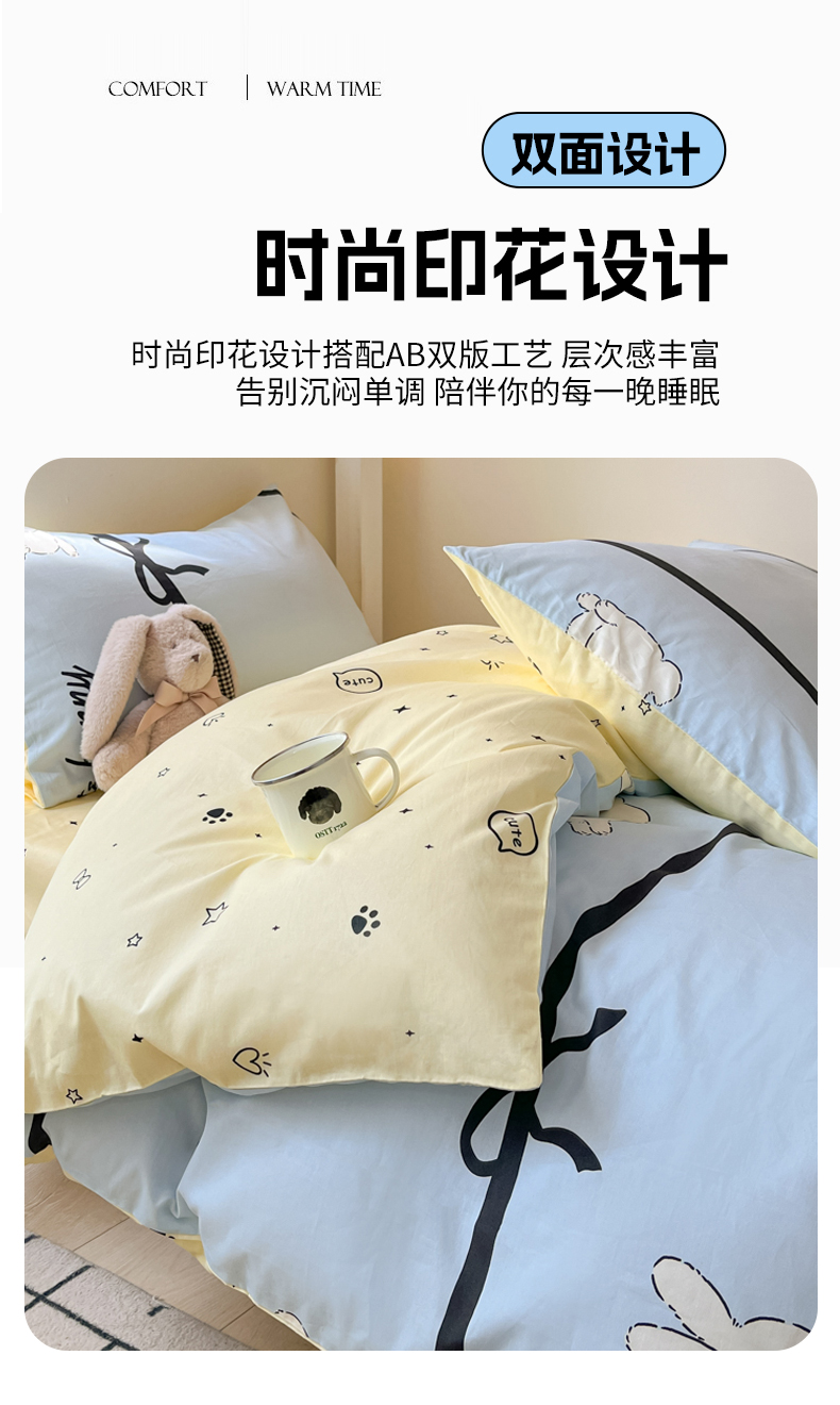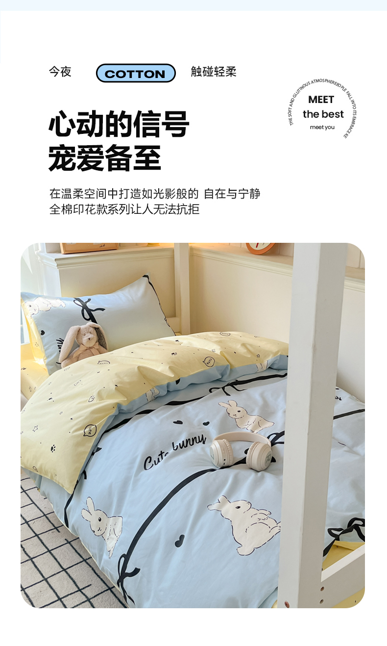 (总)吉象家纺 2025新款12868全棉印花单被套,蓝色泡芙狗,蘑菇小兔,奶油甜心熊,碎花狗狗,碎花小兔,爪爪会客厅